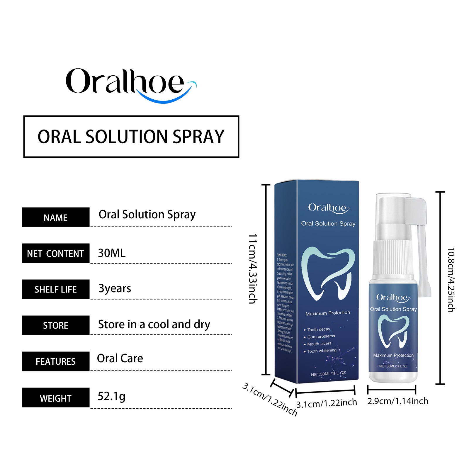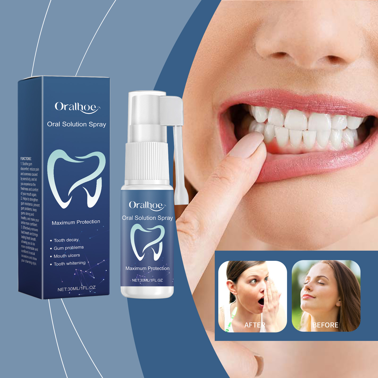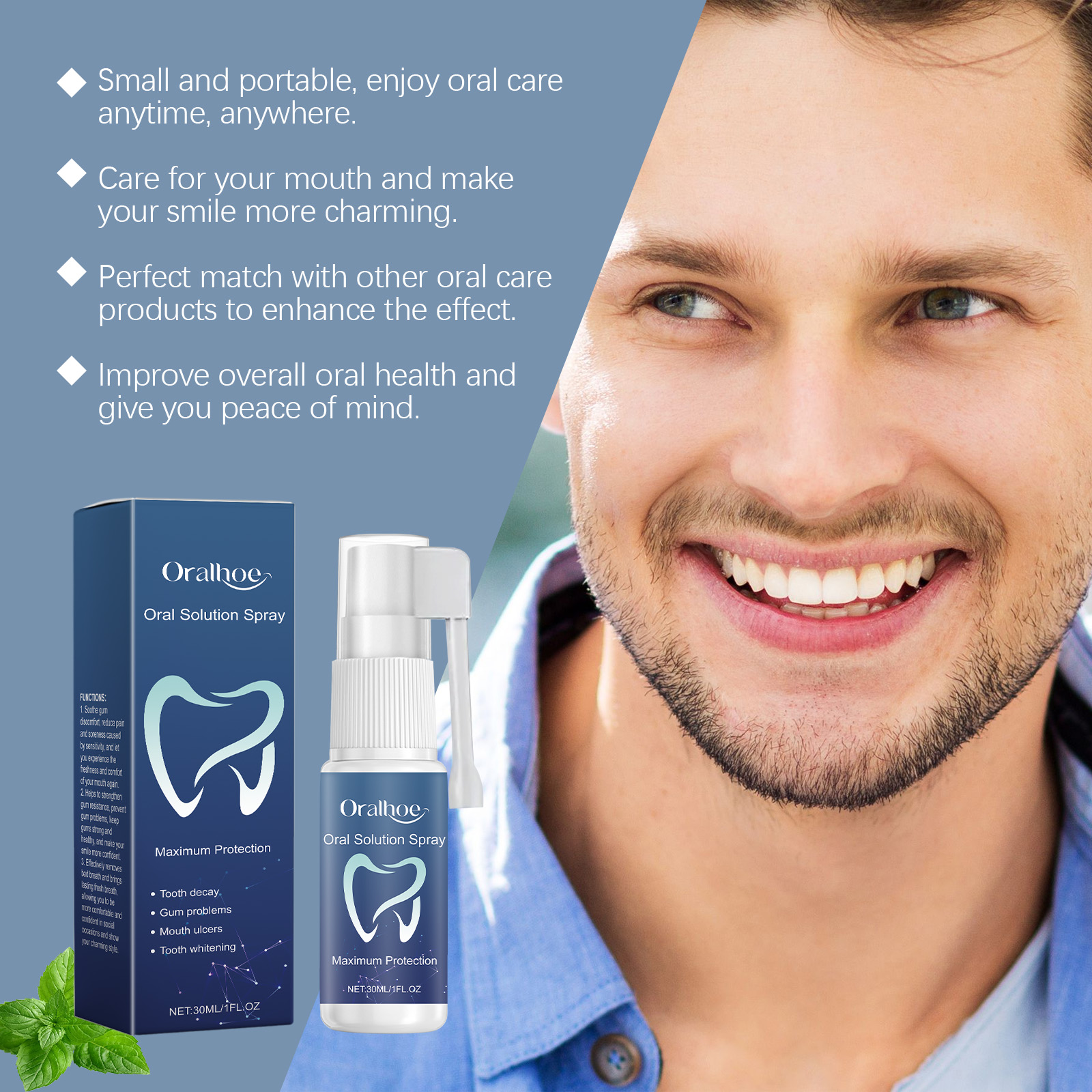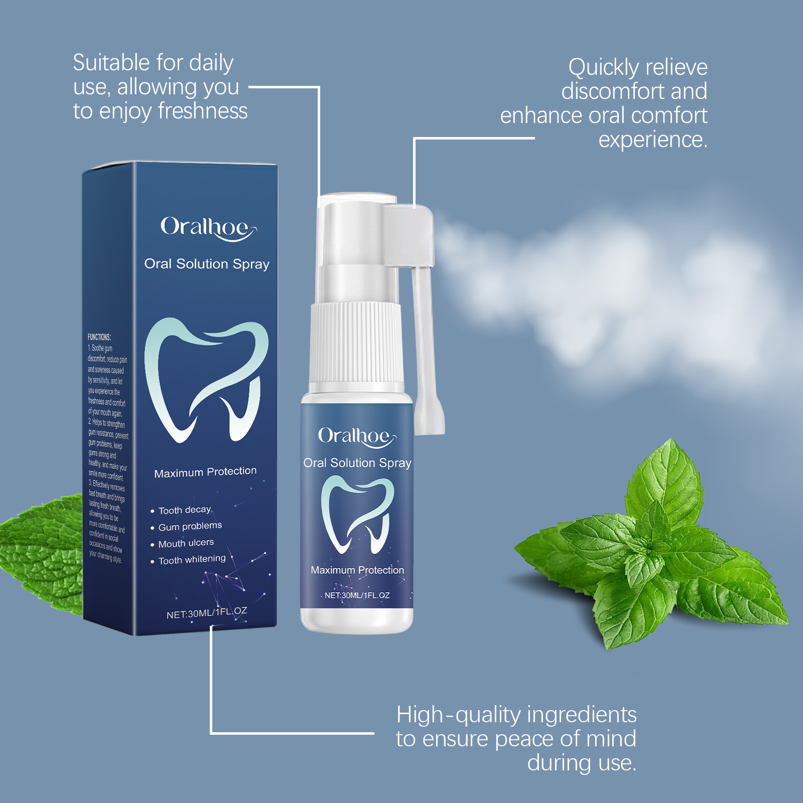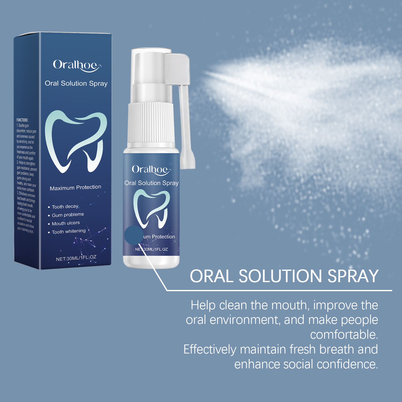 Oralhoe Oral Solution Spray, Freshen Breath, Clean Teeth And Care For Mouth Hygiene Freshen Spray