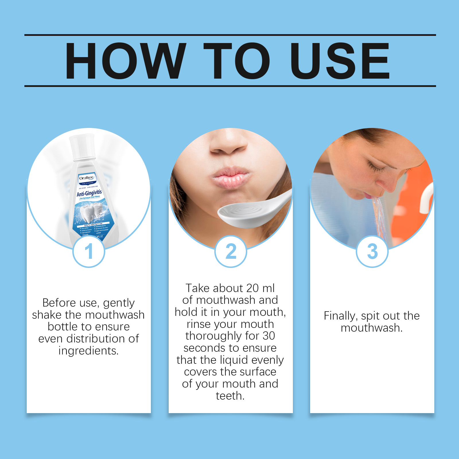 我们的多重防护漱口水含有山茱萸提取物、木糖醇。它可以快速中和气味,保持呼吸清新,让你自信地说话。它的使用方法很简单:使用前,轻轻摇动漱口水瓶,确保成分均匀分布,取约20毫升的漱口水,将其含在口中,彻底冲洗口腔30秒,确保液体均匀地覆盖口腔和牙齿表面,最后,吐出漱口水。并且可以缓解牙龈炎症,每日使用可维持牙龈健康。