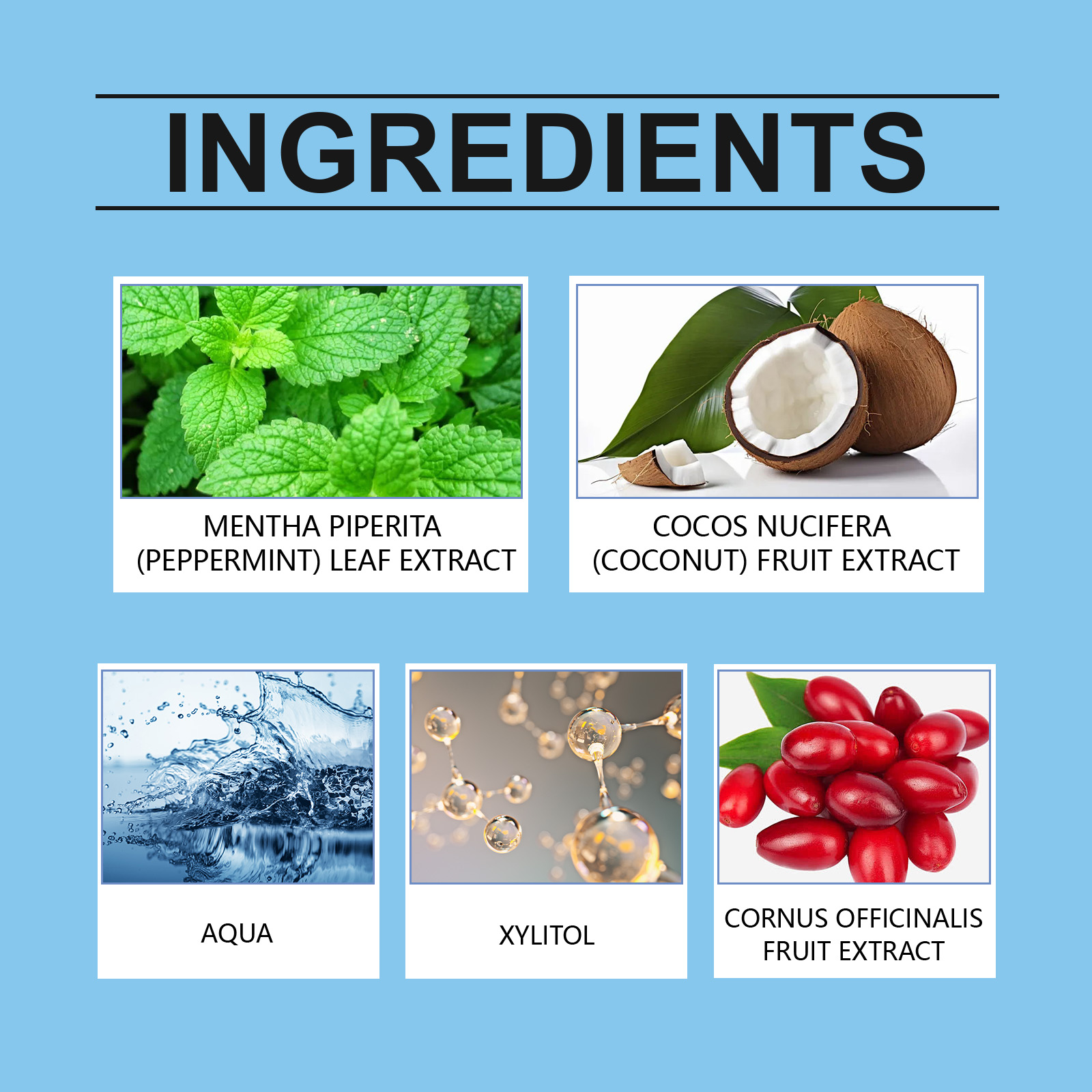 | 成分 | 椰子提取物、山茱萸提取物、木糖醇 |