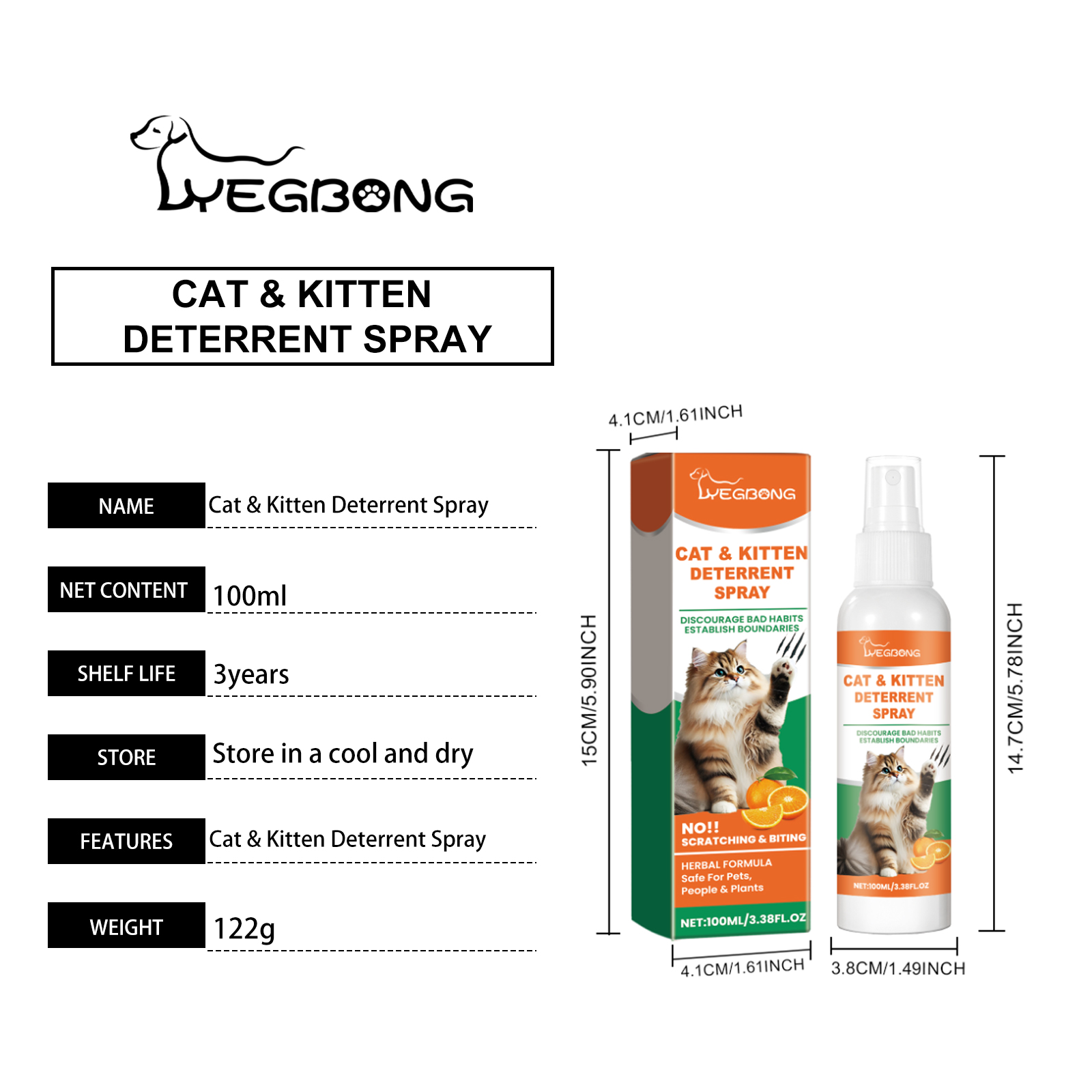 Yegbong Cat Care Spray With Mild Ingredients To Reduce Cat Scratching And Anti-Chewing Home Protection Spray
