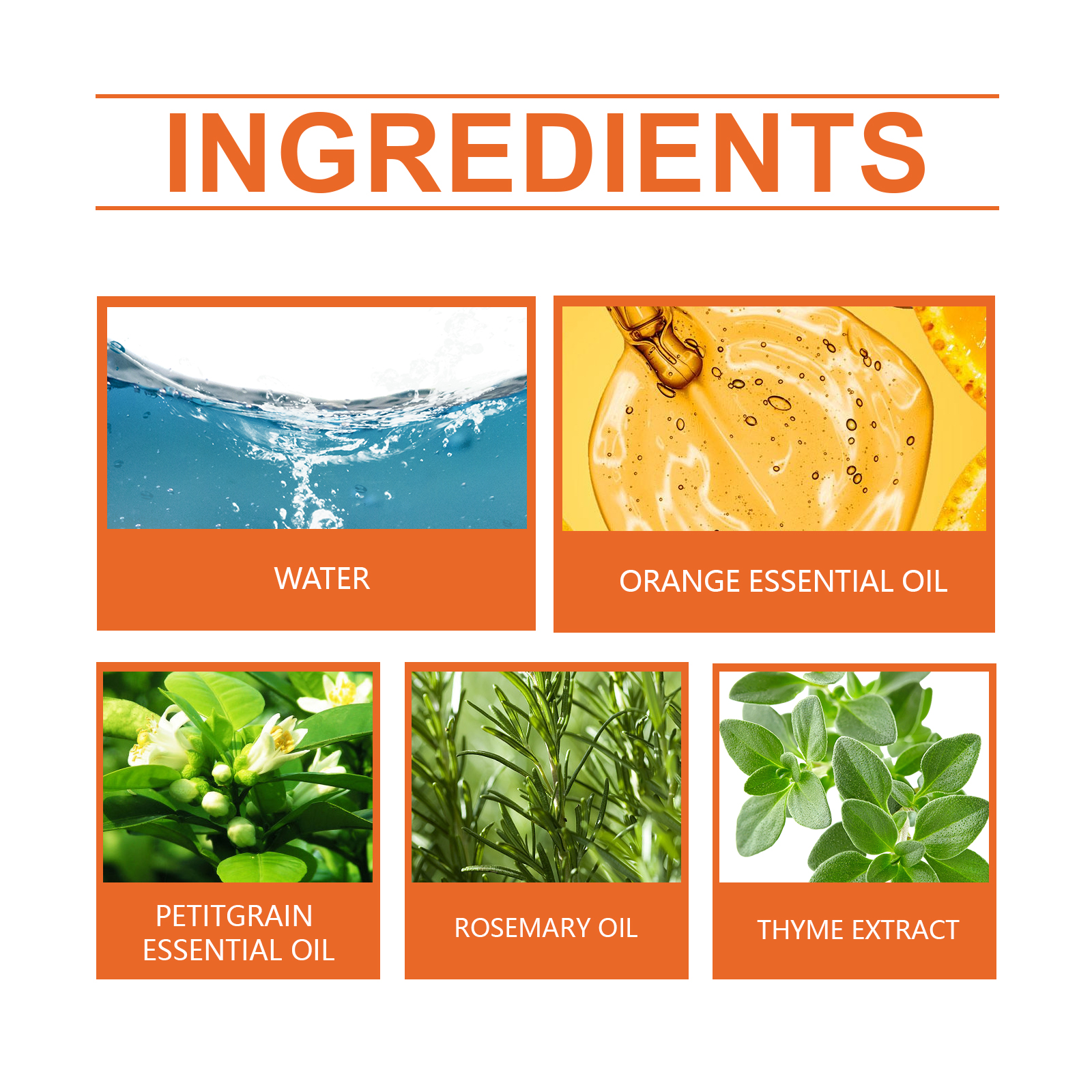 | 成分 | 苦橙叶精油、迷迭香油、百里香提取物 |