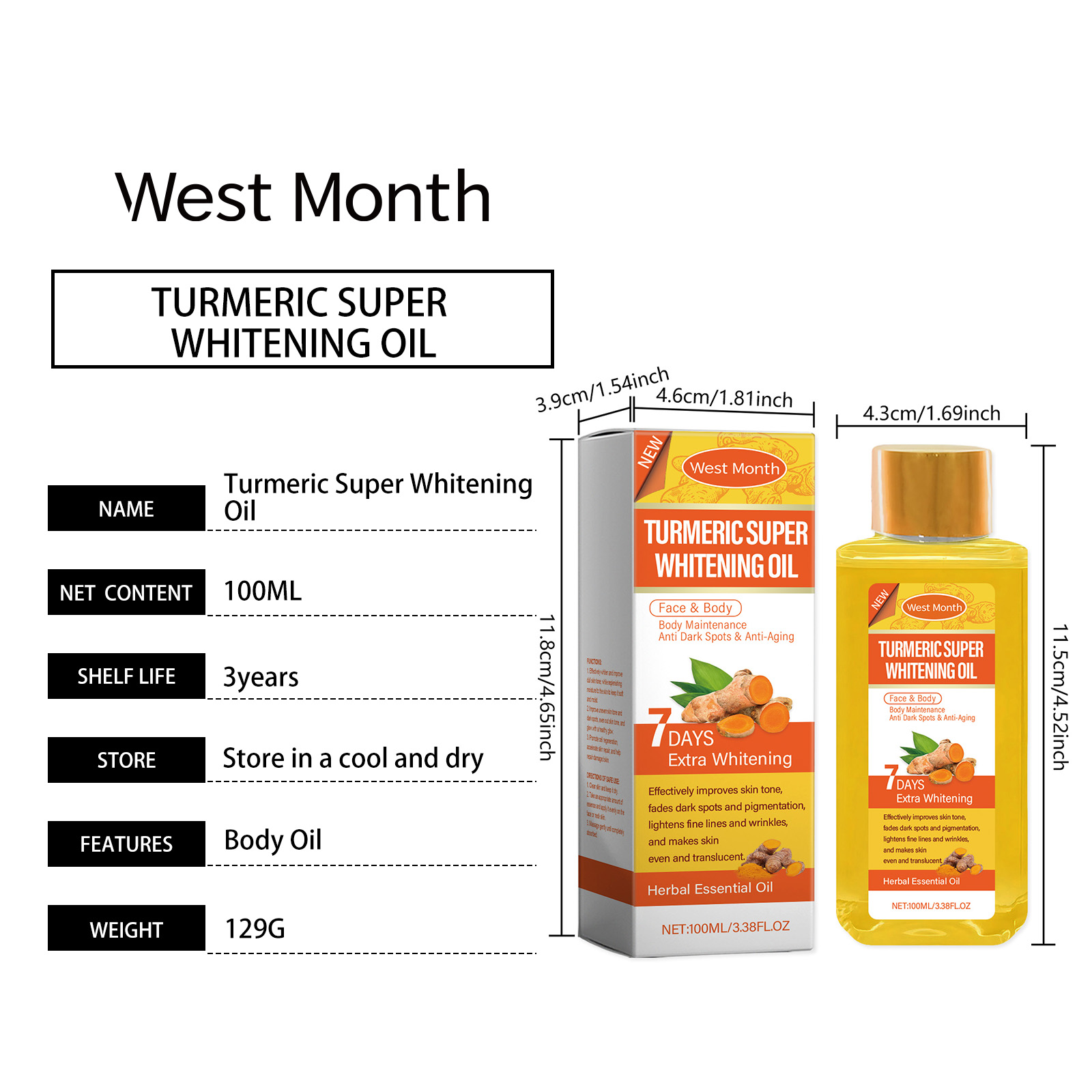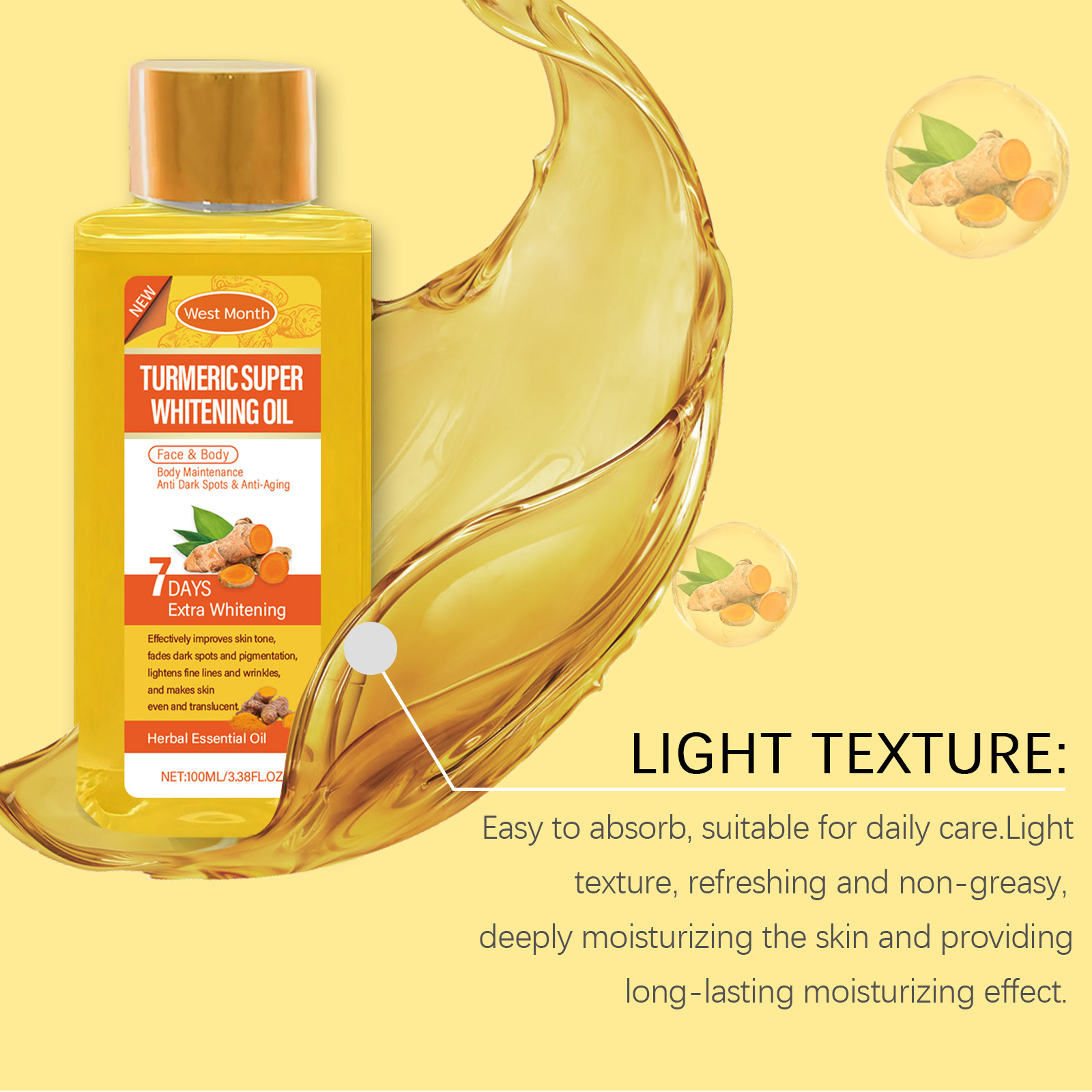 West Month Turmeric Body Whitening Oil, Daily Gentle Moisturizing Body Skin Delicate Skin Oil