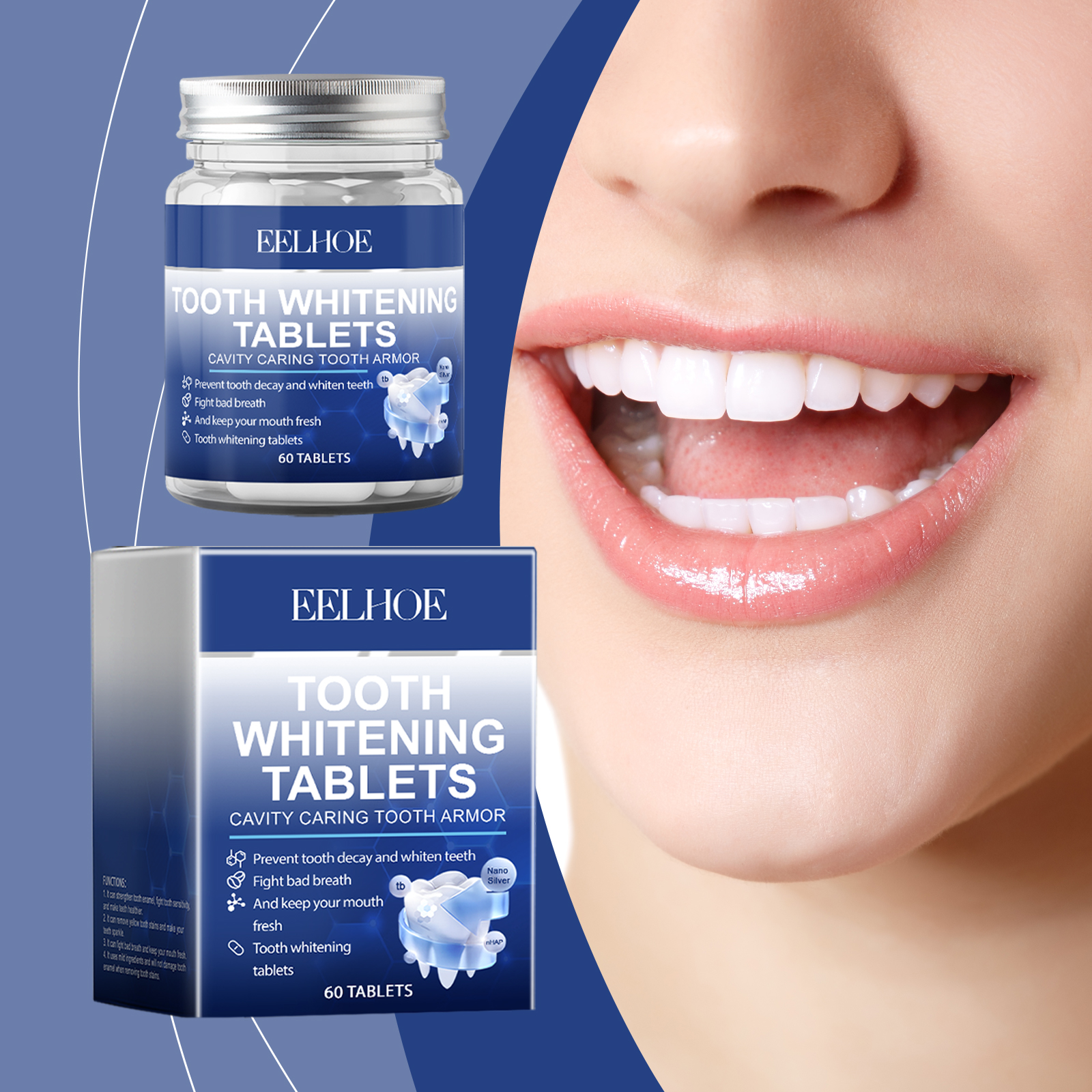 EELHOE Breath Fresh Mouthwash Clean Oral Hygiene Care Teeth Bright Portable Solid Toothpaste Tablets