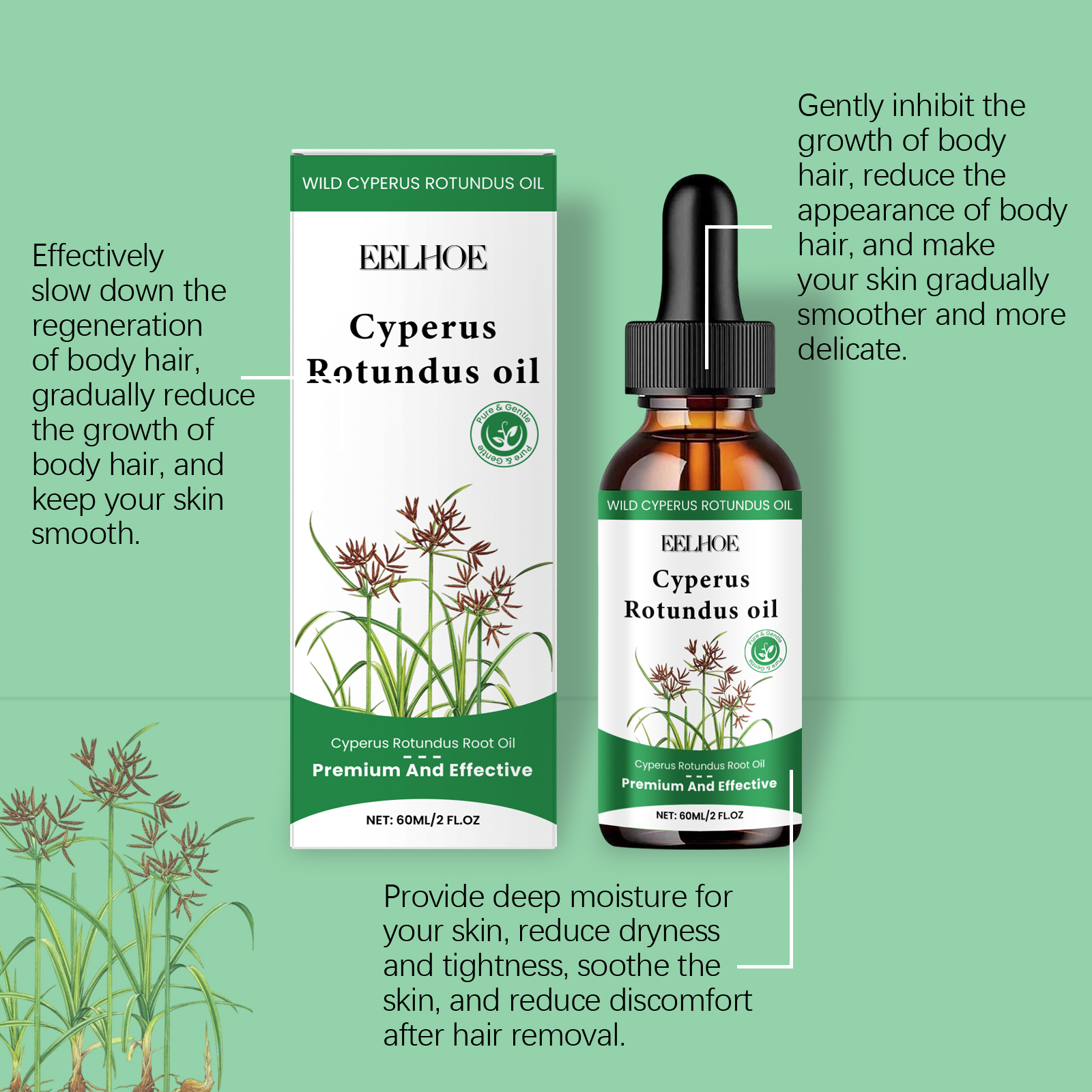EELHOE Hair Removal Care Essential Oil Plant Essential Oil Body Care Gently Nourishes Tender And Smooth Skin And Gently Removes Hair