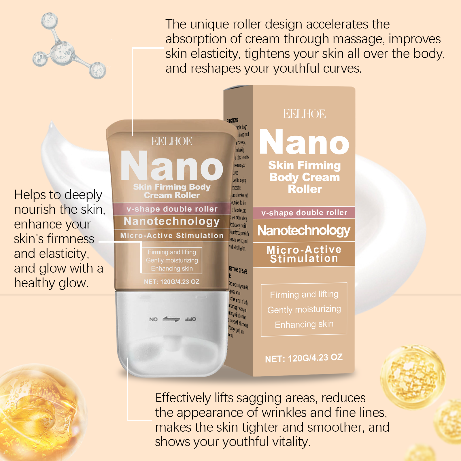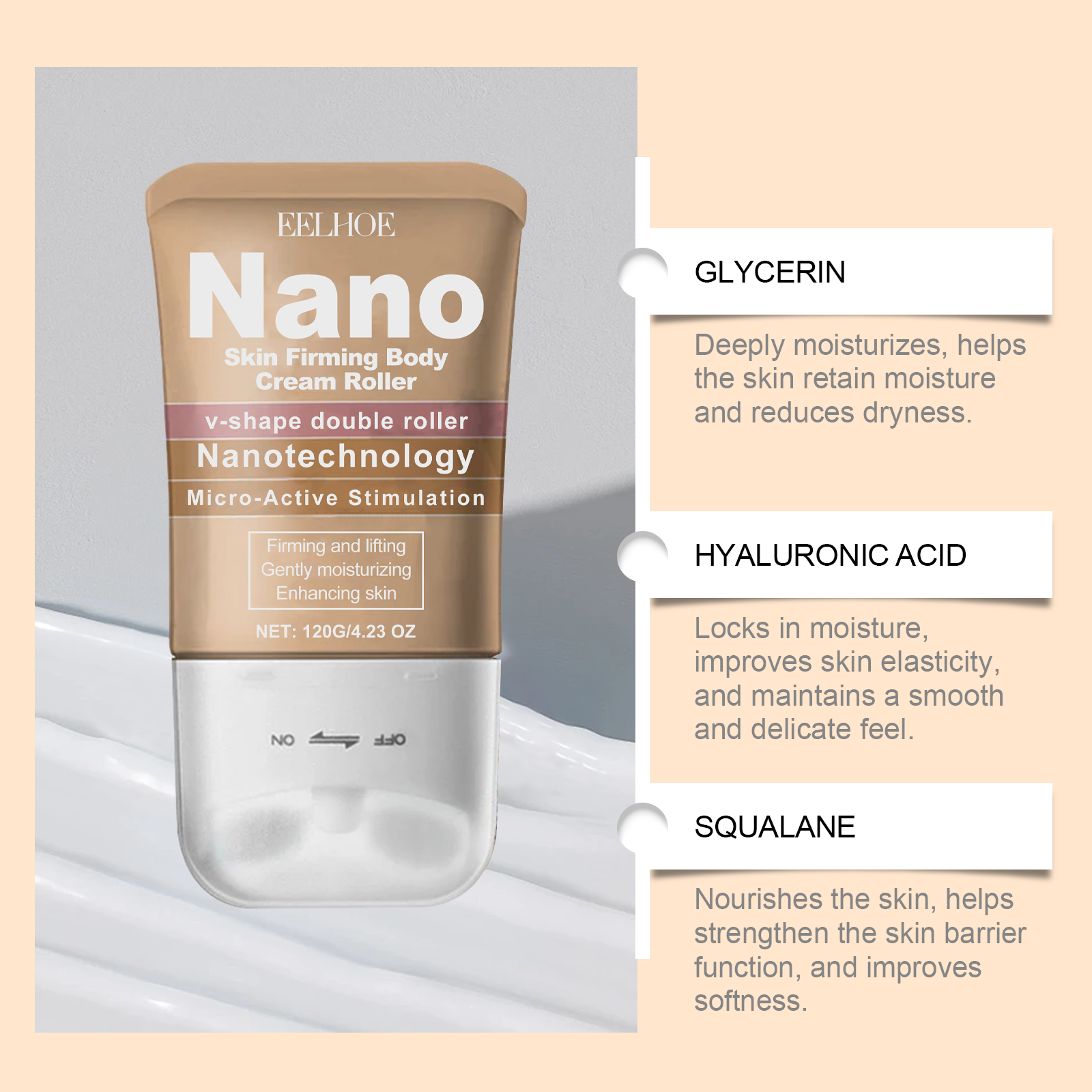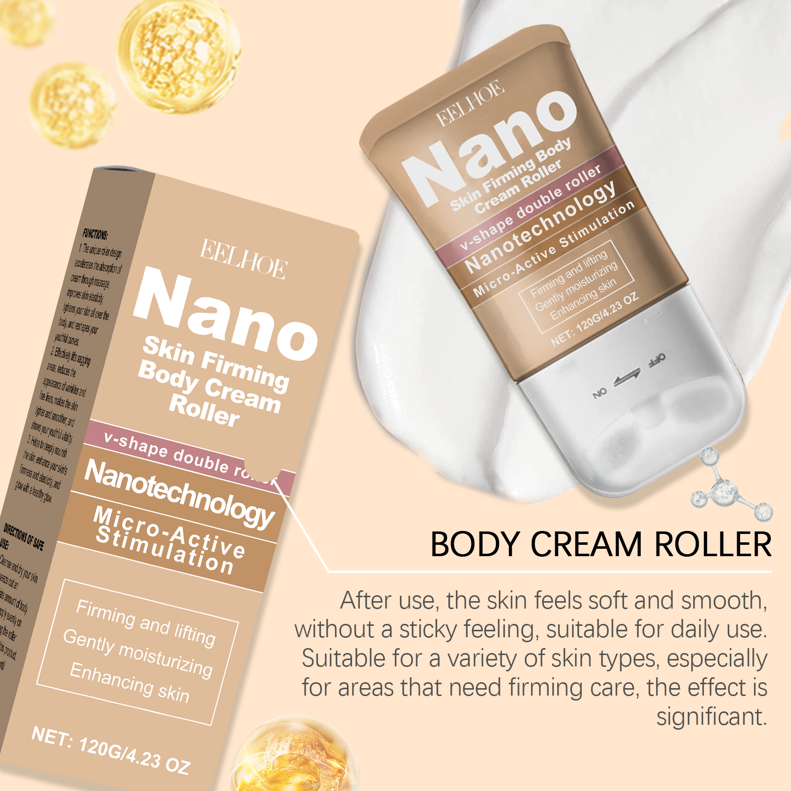 EELHOE Body Cream Roller Hydrating Refreshing Silky, Non-Greasy Gentle Moisturizer For Skin