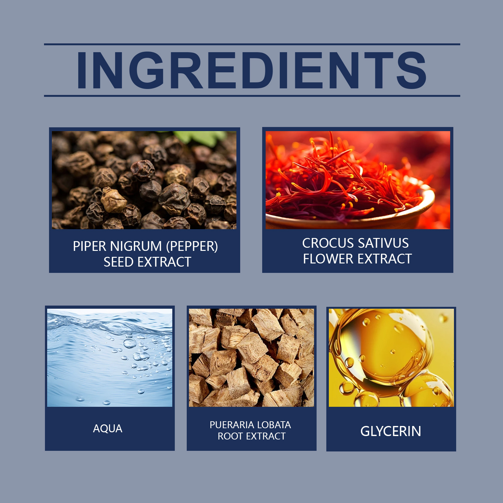 | 成分 | 葛根提取物、黑胡椒提取物、藏红花提取物 |