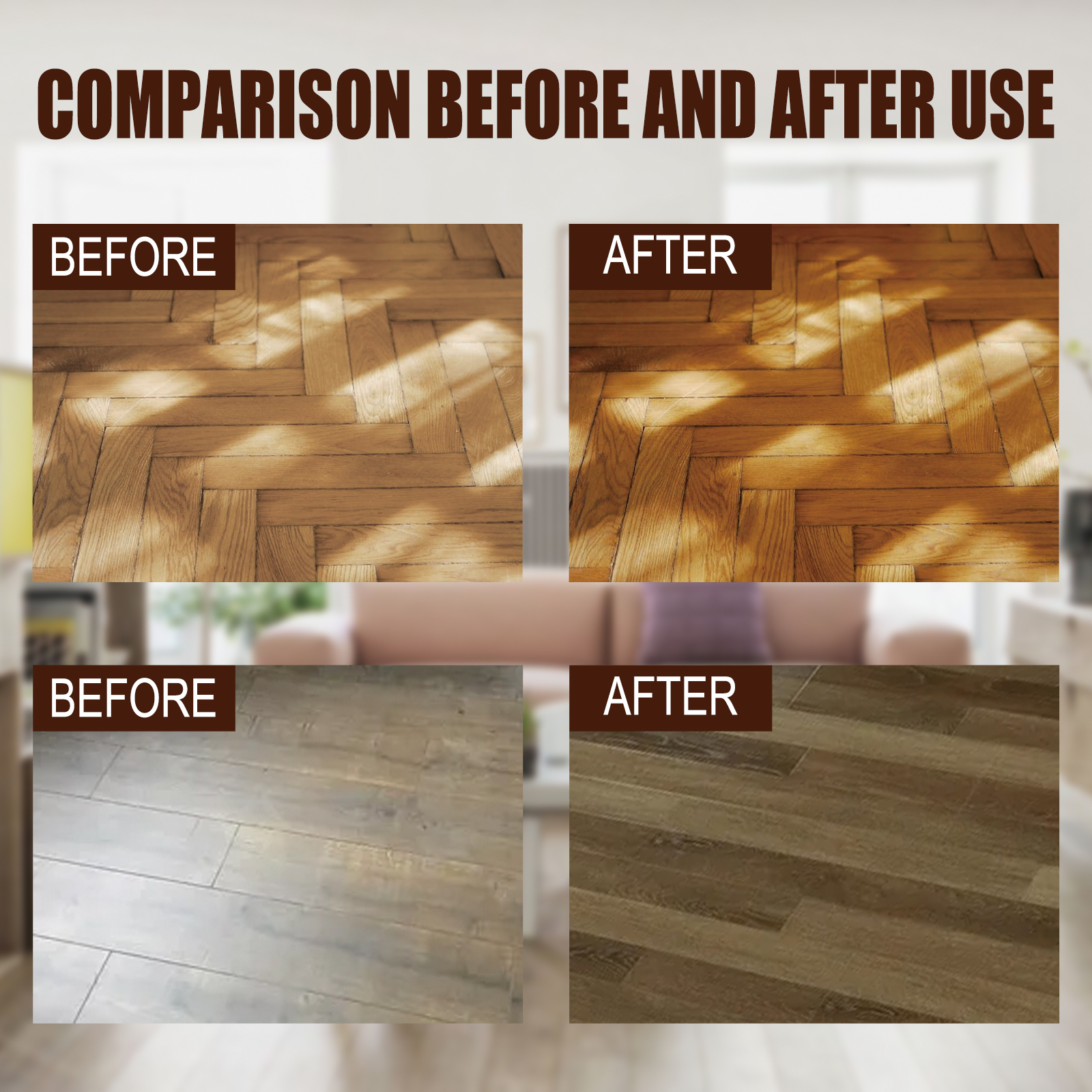我们的家具抛光蜡含有水、蜂蜡、柑桔皮油。它可以清除地板和家具积聚的污垢,防水修补,家具抛光,在木材表面形成保护膜。它的使用方法很简单:首先清洁木质表面,保持干燥,之后将适量产品涂抹在木材表面,再用海绵或抹布均匀涂抹在家具上,然后等待木材吸收干燥,最后用海绵反复擦拭、打磨即可。使用后有效清除木材表面污垢,清除异味,让地板和家具充满光泽,焕然一新。