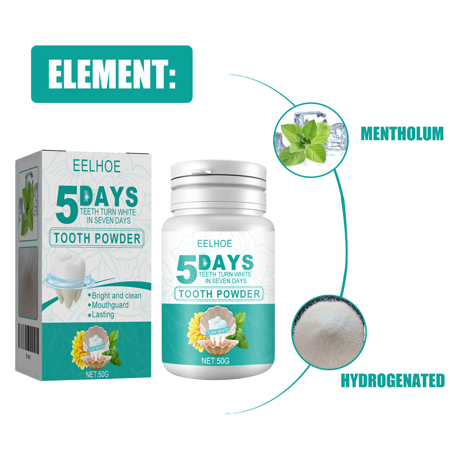 EELHOE 5 Day Whitening Tooth Powder, Clean Teeth Remove Dirt Plaque Fresh Mouth Clean Teeth Powder