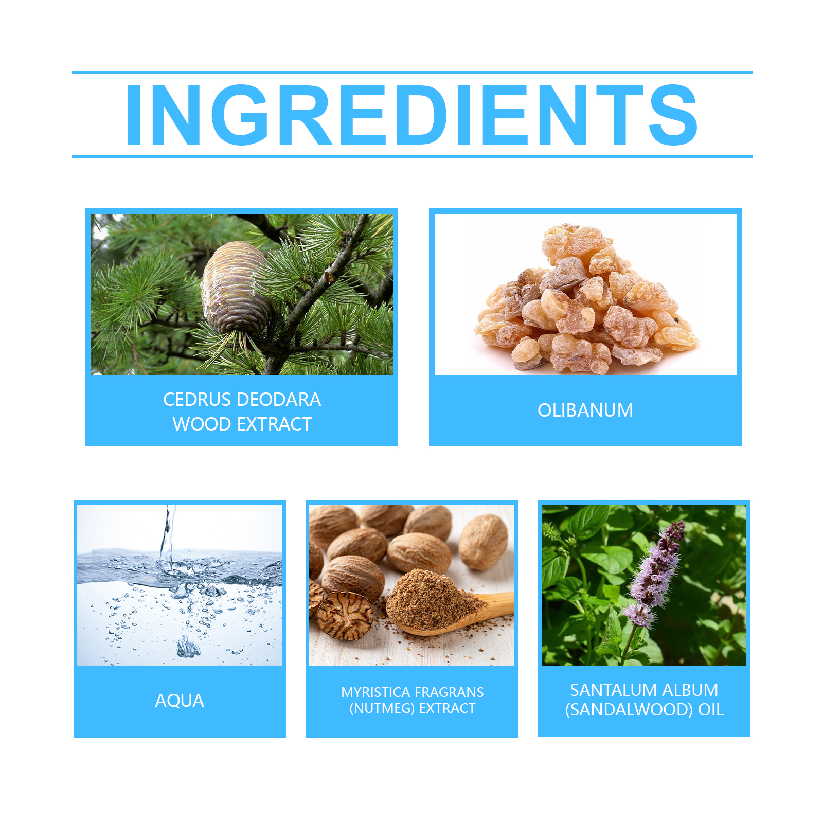 | 成分 | 乳香、雪松木提取物、肉豆蔻提取物 |
