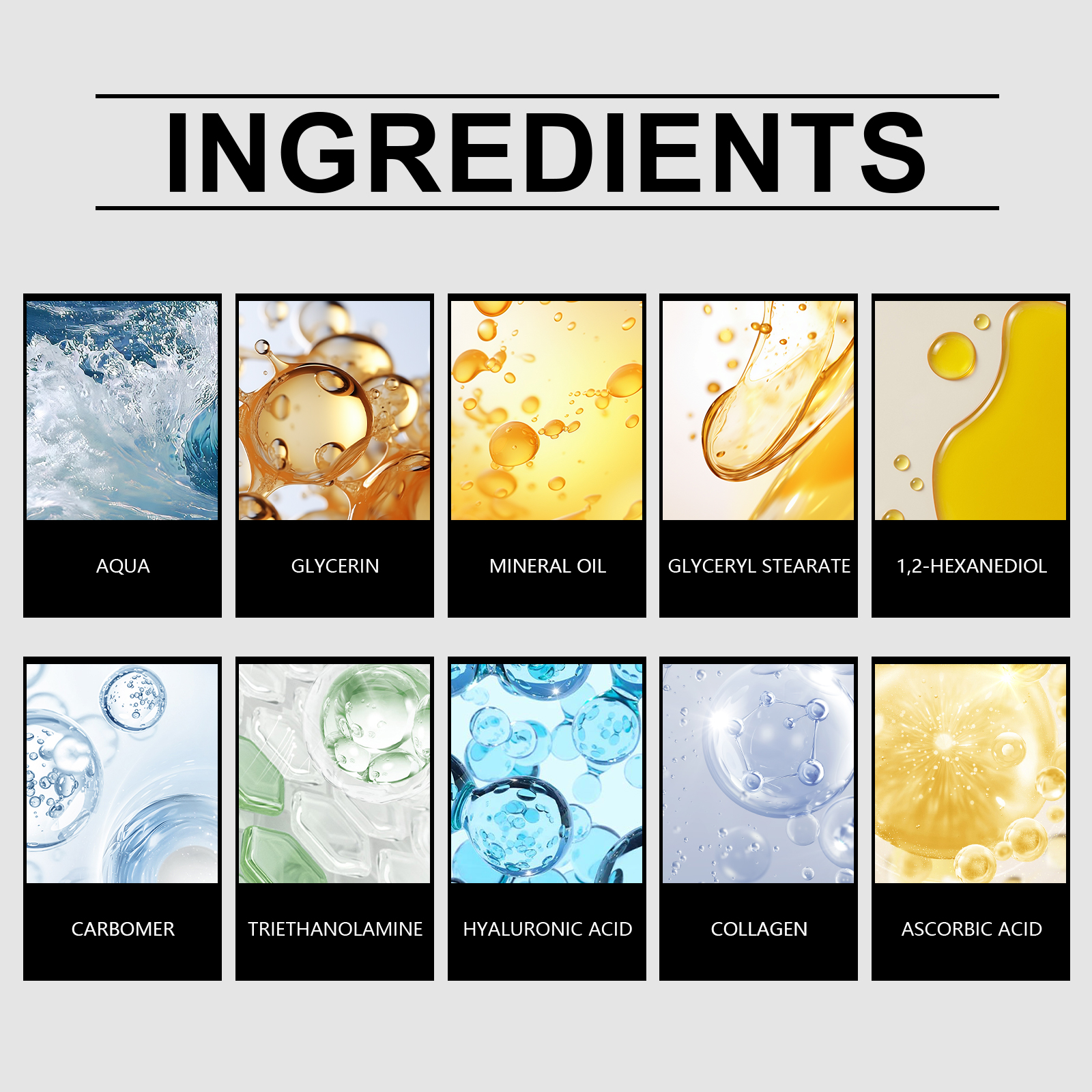 | 成分 | 透明质酸、胶原、抗坏血酸(维生素C) |