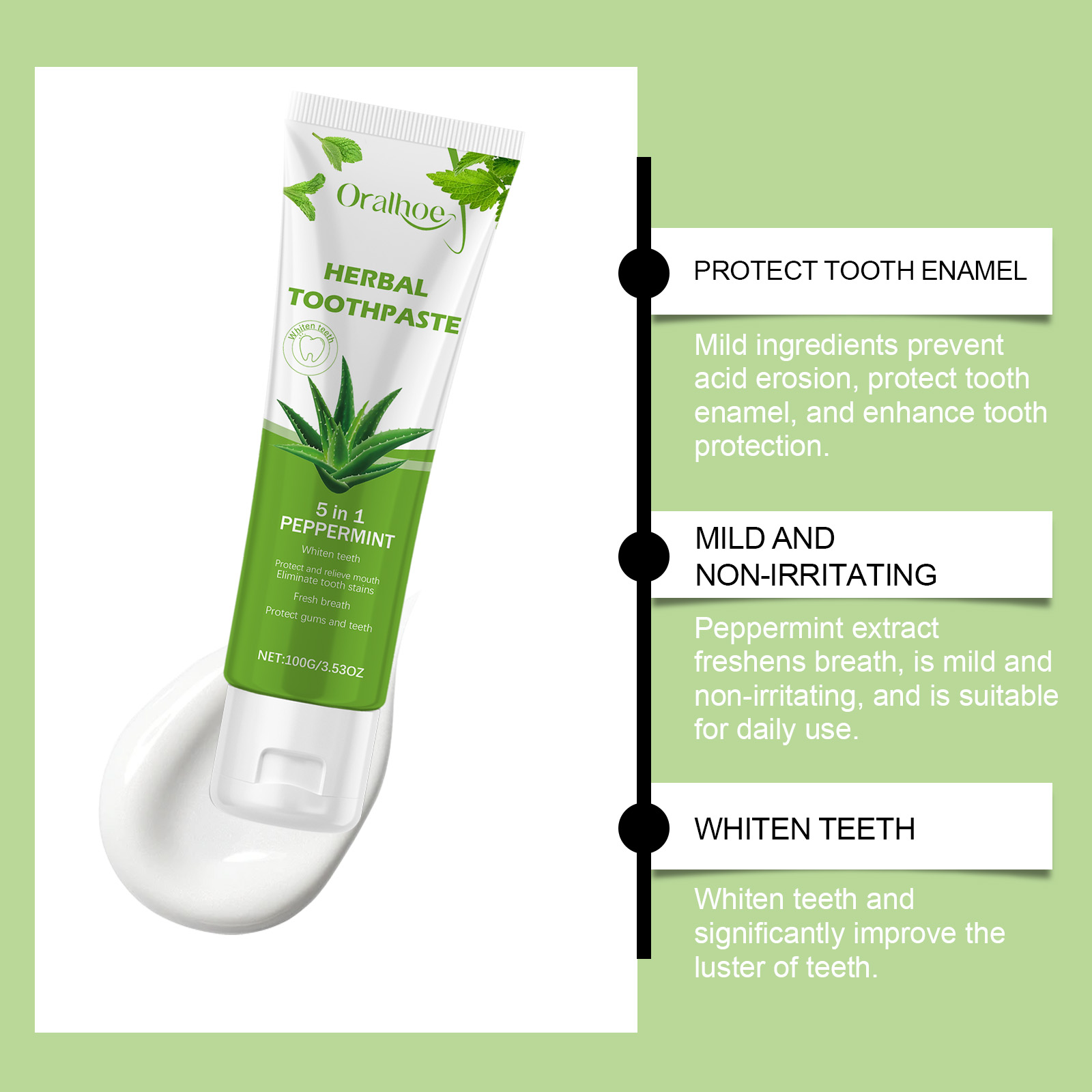 Oralhoe Aloe Vera Cleaning Toothpaste, Gently Cleans Odor Stains Brightening Tooth Care Toothpaste