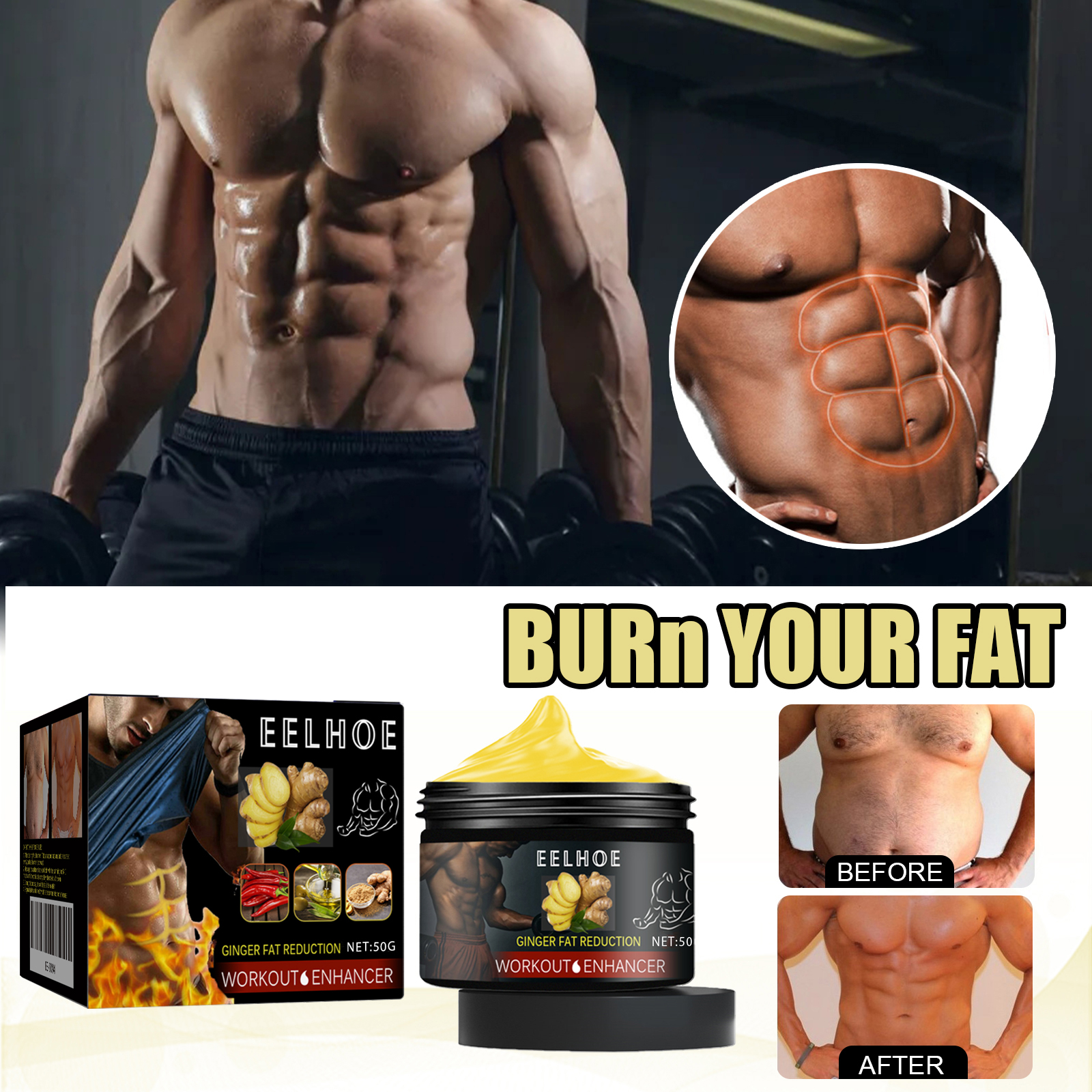 EELHOE Ginger Abdominal Cream For Men And Women Fitness Abdominal Body Skin Moisturizing And Hydrating Massage Cream