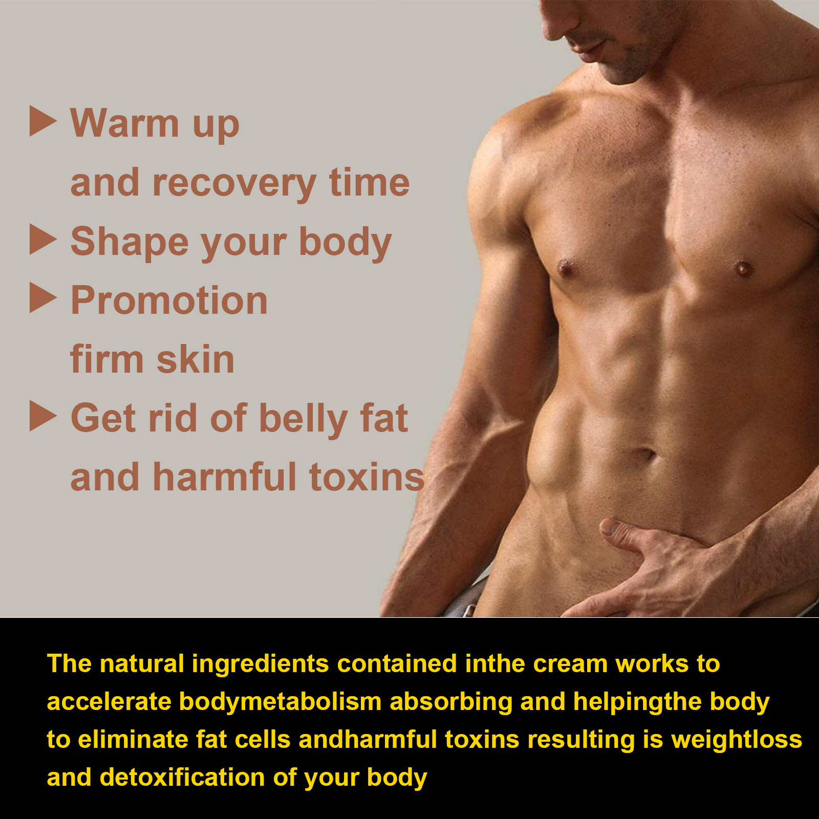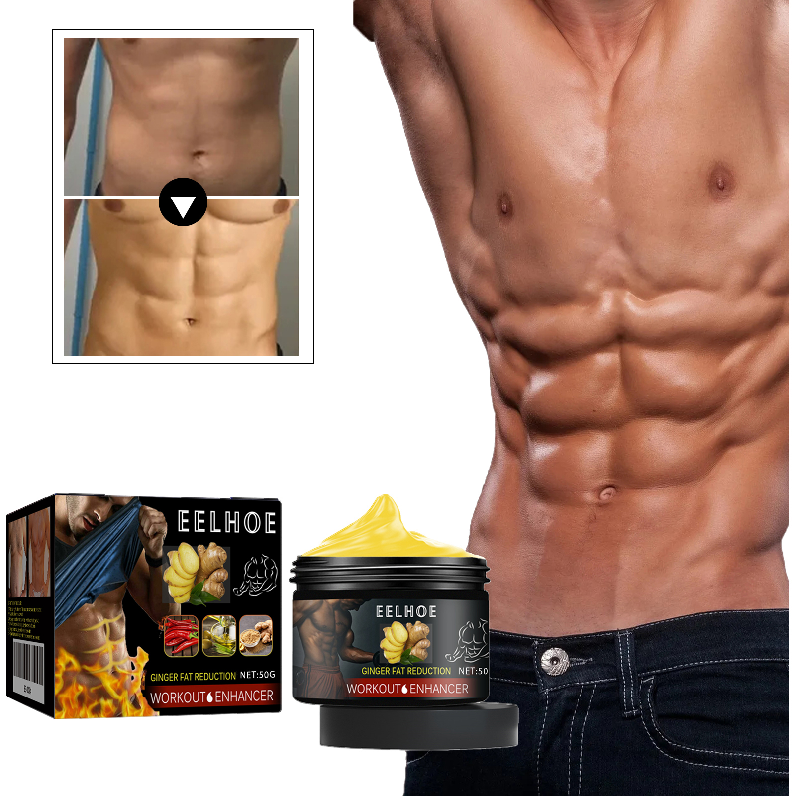 我们的生姜腹肌膏含有辣椒油、生姜提取物、橄榄油。它有助于塑身。它的使用方法很简单:1.清洁腹部后,取适量均匀涂抹于腹部及腰部。2.用手掌环来回按摩腹部5-10分钟,直至产品完全被皮肤吸收。3.在这个过程中,皮肤会感到有点发烧。建议有规律的生活习惯和健康的饮食习惯,以便更好地使用。使用后加速身体的新陈代谢和吸收,帮助身体消除脂肪细胞和有害毒素,从而达到减肥和排毒的效果。