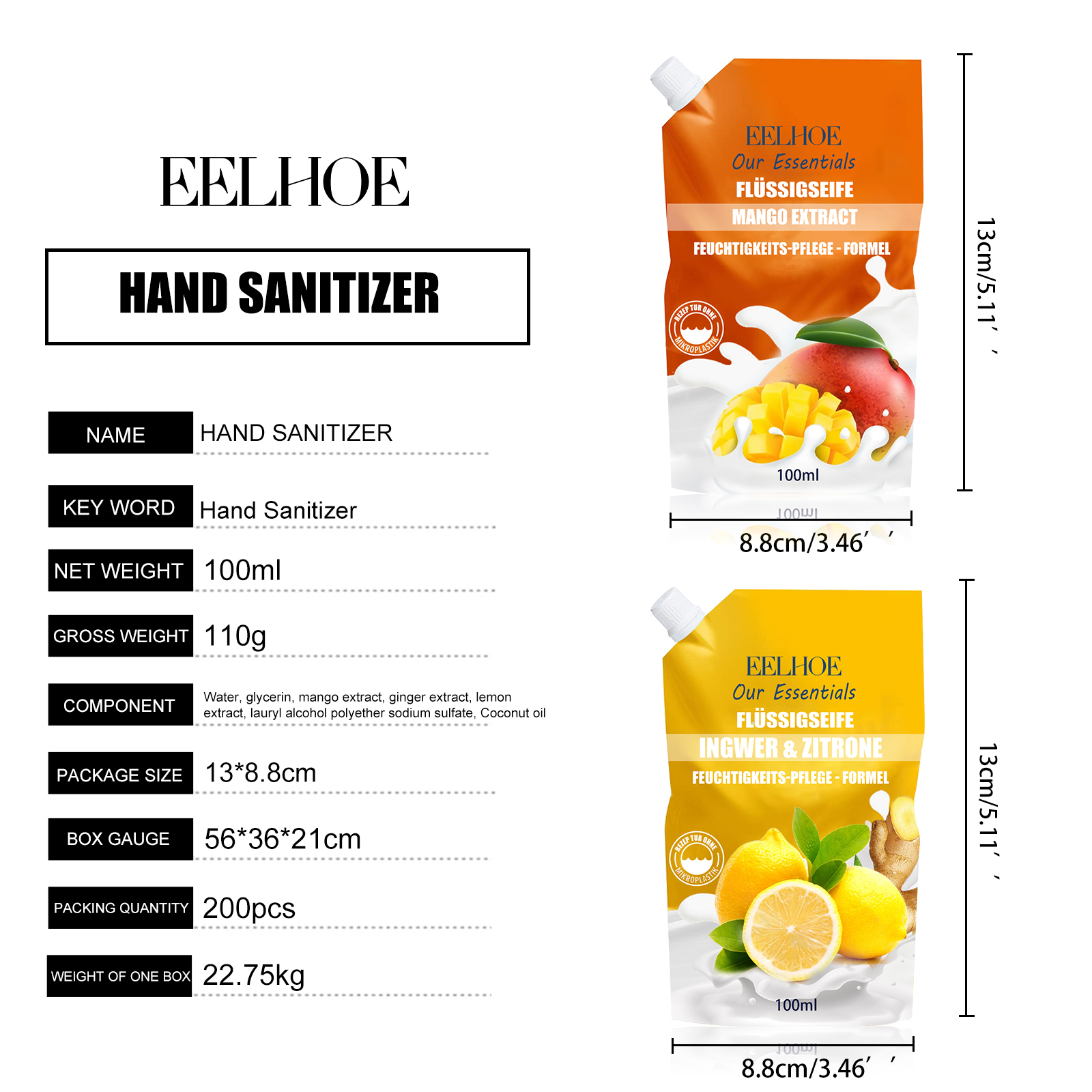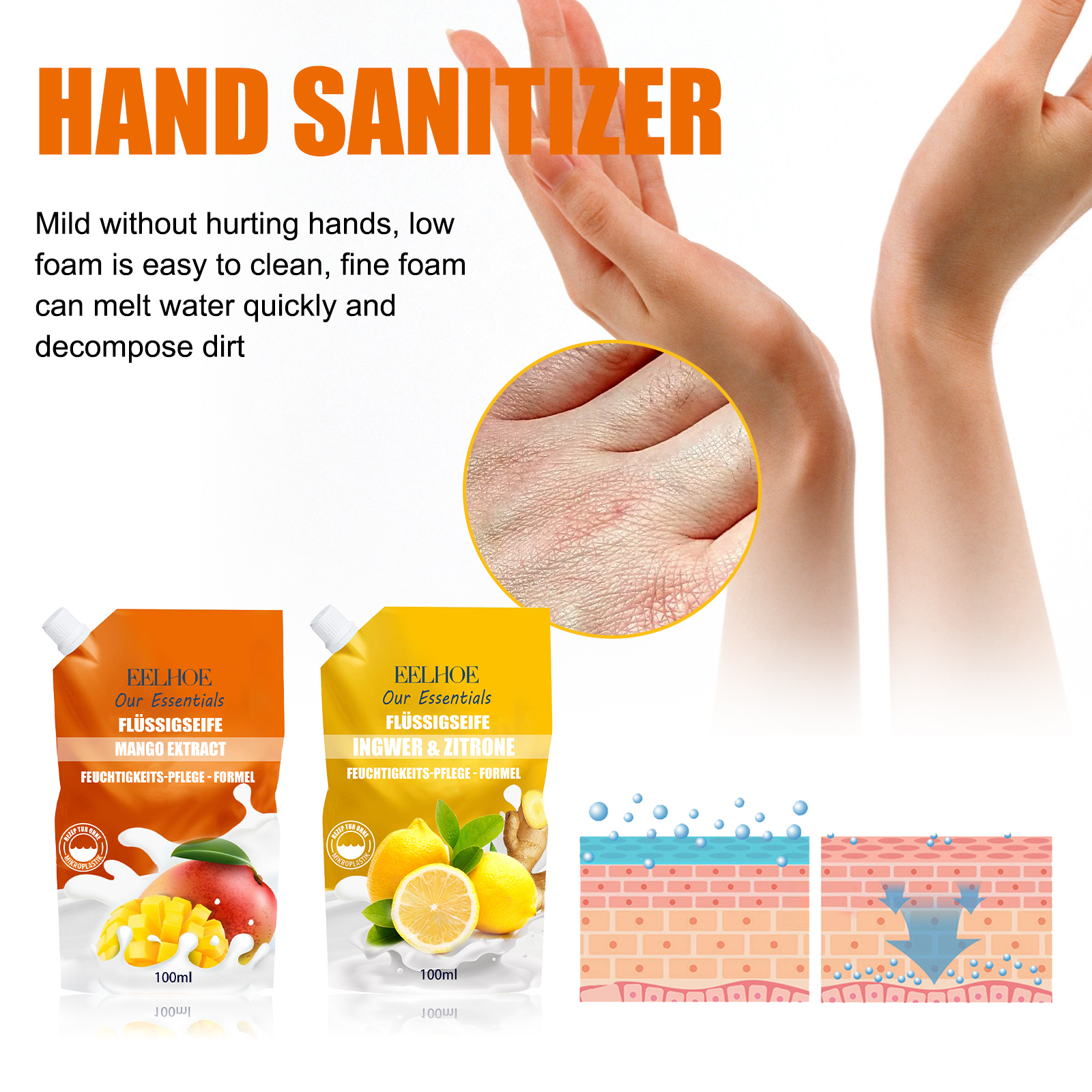 EELHOE Hand Sanitizer, Gentle Hand Cleanser, Decontamination, Moisturizing And Long-Lasting Portable Hand Sanitizer