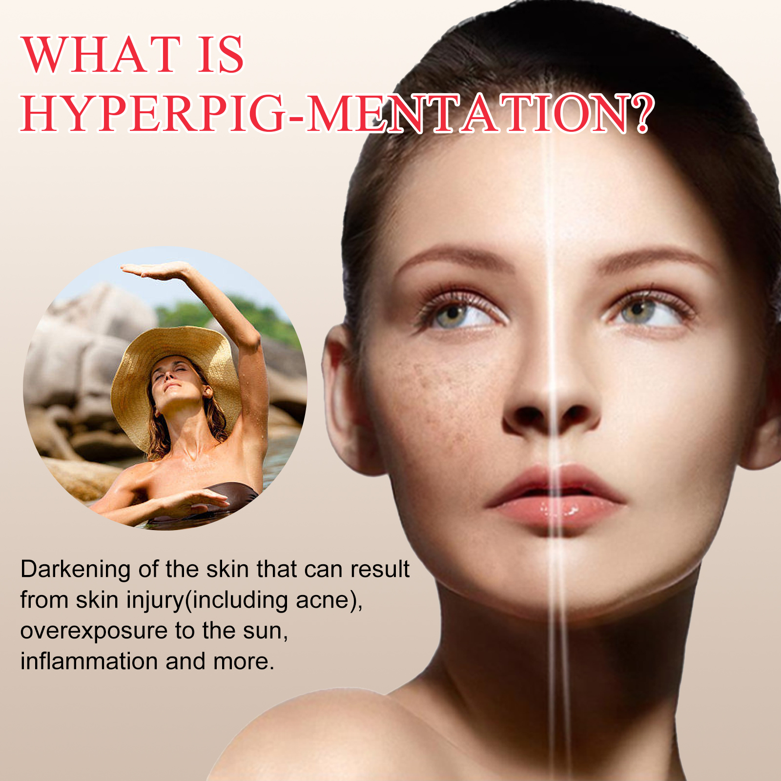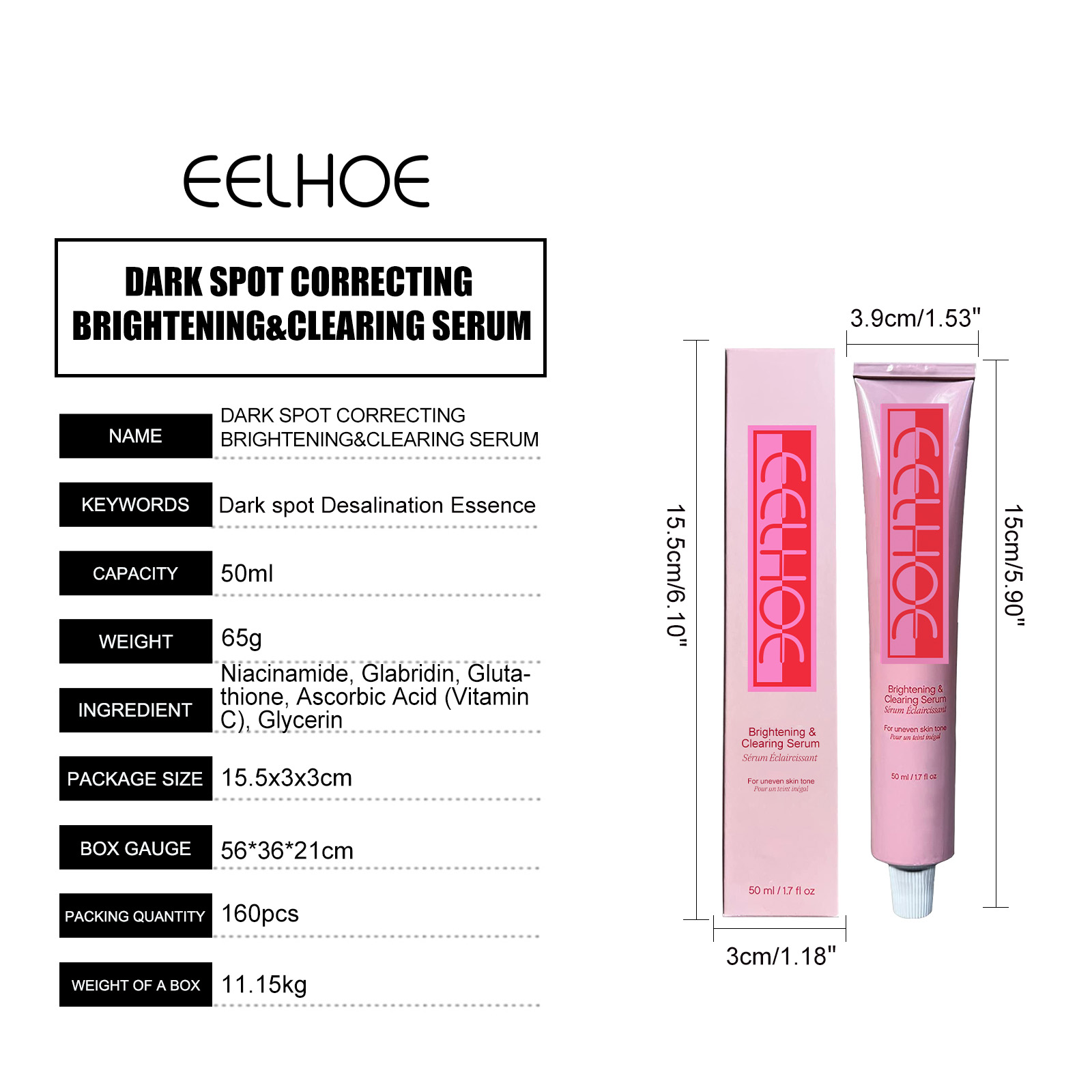 我们的面部护理精华露含有烟酰胺、光甘草定、谷胱甘肽。它可以显著减少黑斑和皱纹,改善皮肤的整体纹理和肤色的明亮度。它的使用方法很简单:1.清洁和干燥皮肤2。取适量精华液,均匀涂抹于面部。轻轻按摩直至完全吸收(建议早晚各使用一次,效果更佳)。并且将我们的护理精华露涂抹在你身体任何有色素沉着的部位,包括你的脸、手臂、腿、大腿内侧、膝盖和手肘,可以明显改善肤色,减少黑斑、老年斑、晒斑和粉刺。