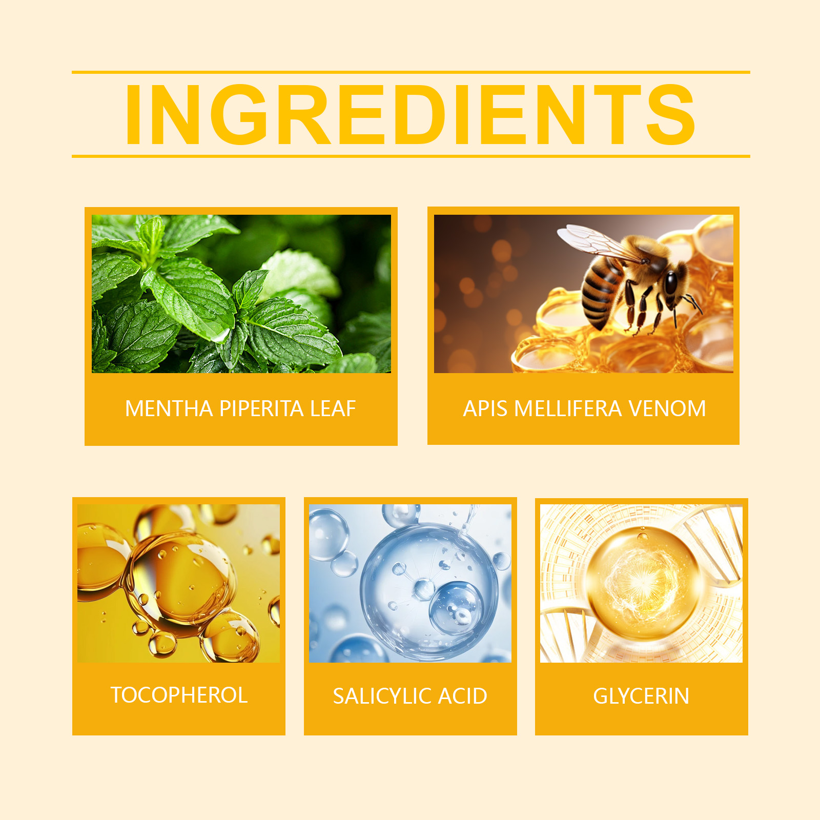 | 成分 | 蜂毒、薄荷叶、维生素E(生育酚) |