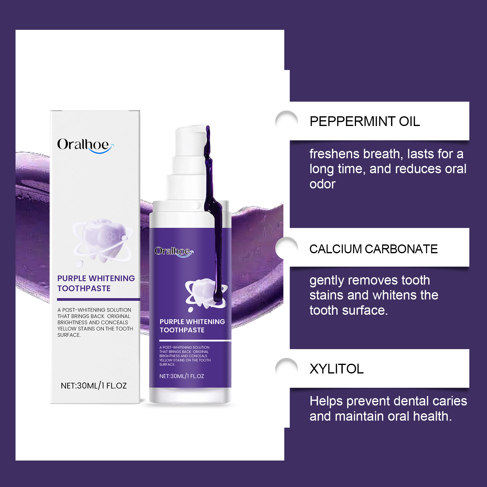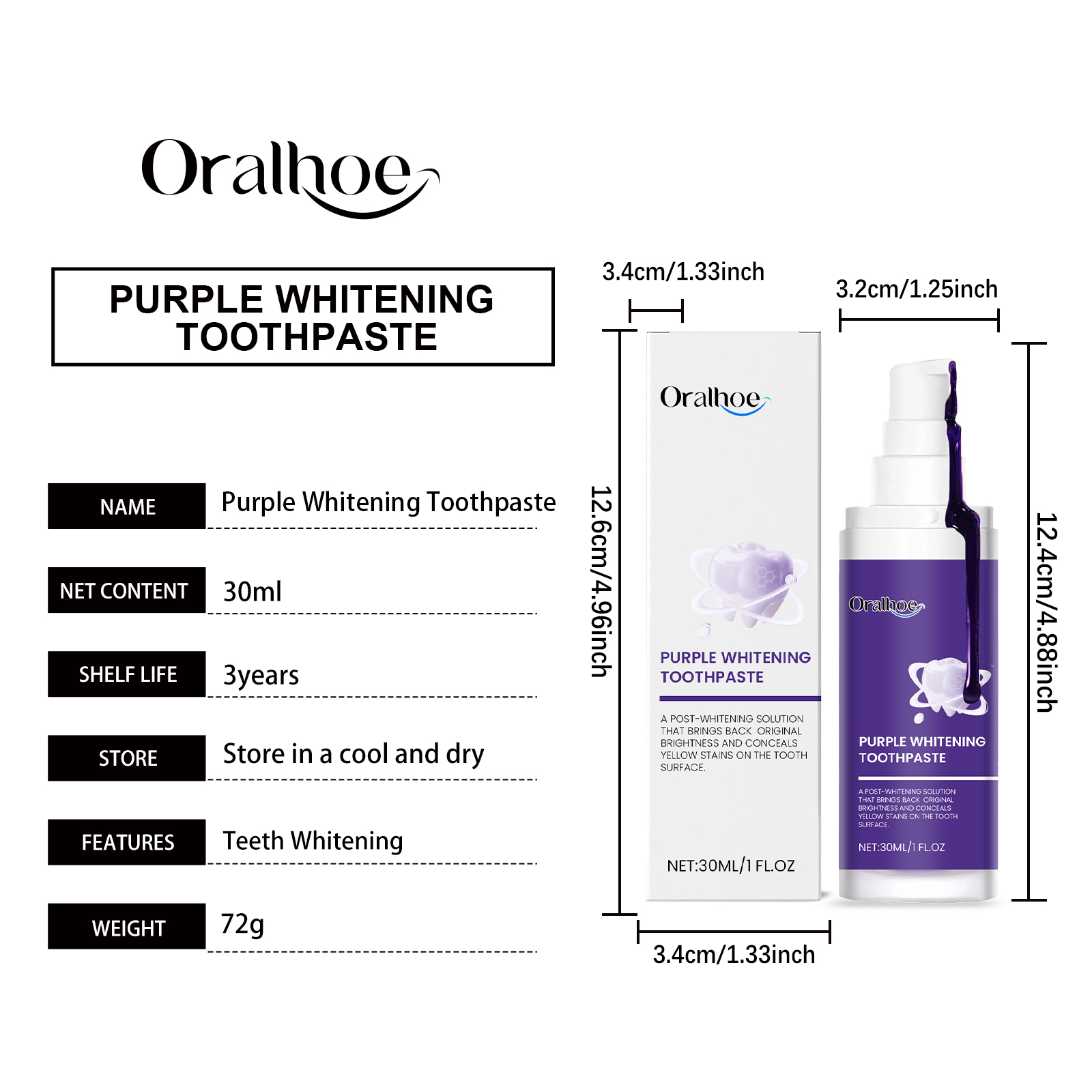 Oralhoe Purple Toothpaste, Gently Cleans Tartar Stains And Mint Freshens Dental Hygiene