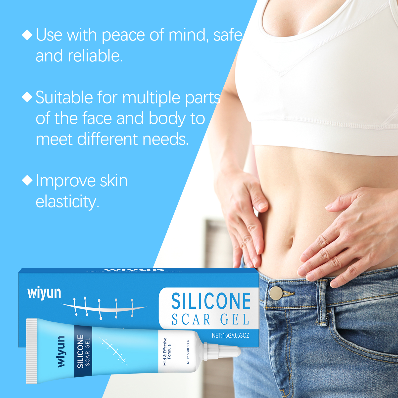 我们的皮肤护理凝胶含有霍霍巴籽油、芦荟提取物、维生素E。它可以具有抗氧化作用,舒缓皮肤,减少不适。它的使用方法很简单:1.清洁皮肤并保持干燥。2.取适量本品均匀涂抹于妊娠纹、烧伤疤痕及其他疤痕上。3.轻轻按摩以促进吸收。荷荷巴籽油和芦荟提取物的结合有助于加速疤痕愈合的过程。维生素E提供丰富的营养,保持皮肤水分,防止干燥。