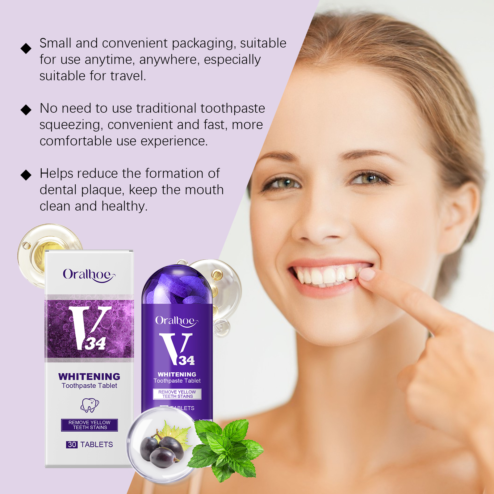 Oralhoe Whitening Toothpaste, Tooth Cleaning Yellow Tartar And Oral Odor Care Portable Clean Tablet
