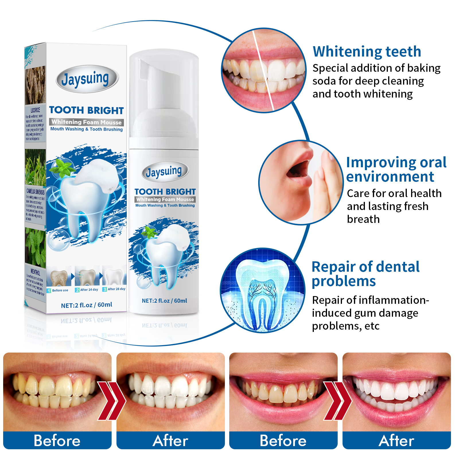 Jaysuing Whitening Mousse Toothpaste, Oral Cleaning Odor Tartar Teeth Whitening Portable Foam Toothpaste