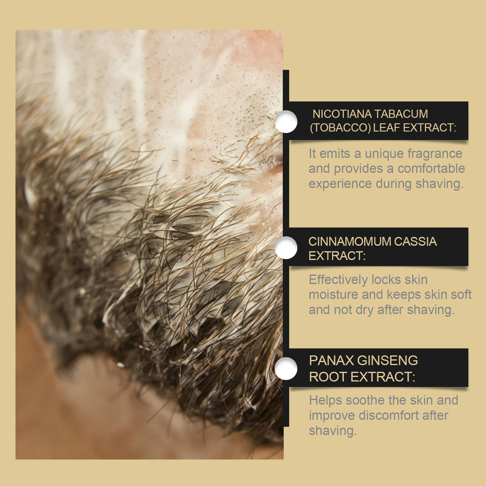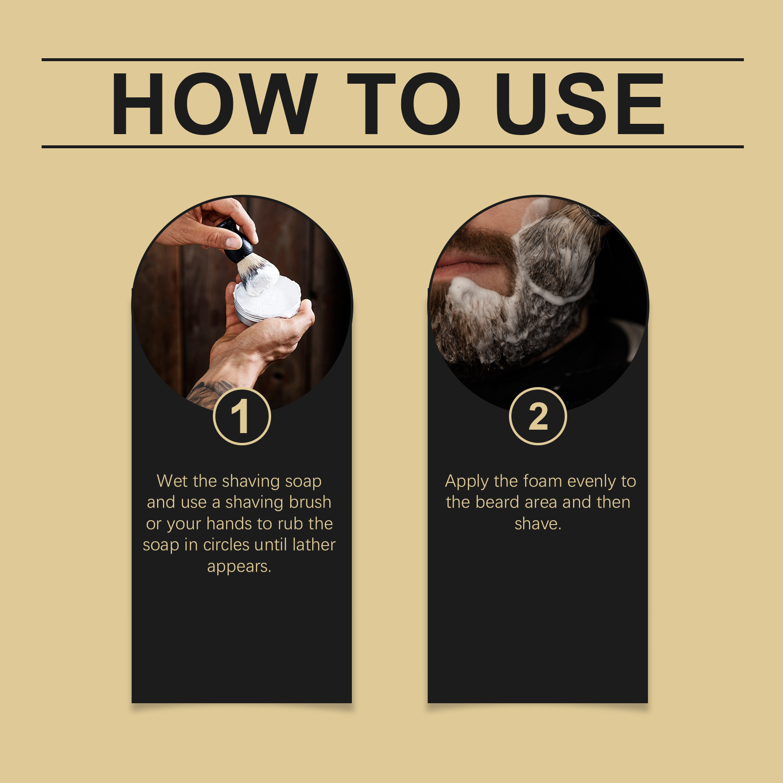 我们的甜烟草男士剃须皂含有烟草提取物、肉桂提取物。它可以轻易覆盖胡须,减少剃须刀与皮肤的摩擦。它的使用方法很简单:将剃须皂湿润,用剃须刷或双手将皂搓成圈,直到皂液出现。将泡沫均匀地涂在胡须部位,然后刮胡子。并且可以锁住水分,剃须后皮肤柔软不紧绷。