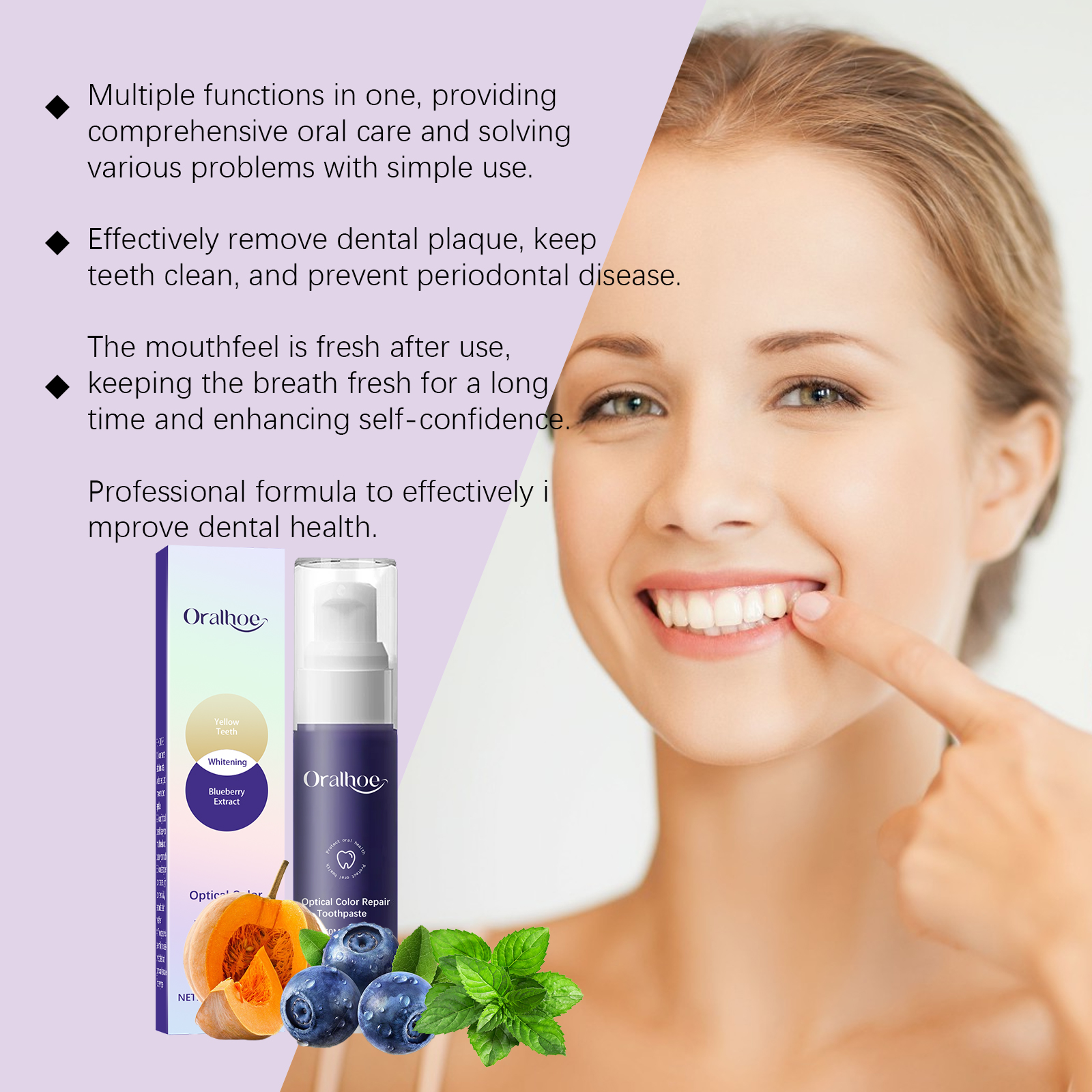 Oralhoe Purple Shine Toothpaste Teeth Stains Smoke Stains Clean Gloss Teeth Fresh Mouth Care Toothpaste