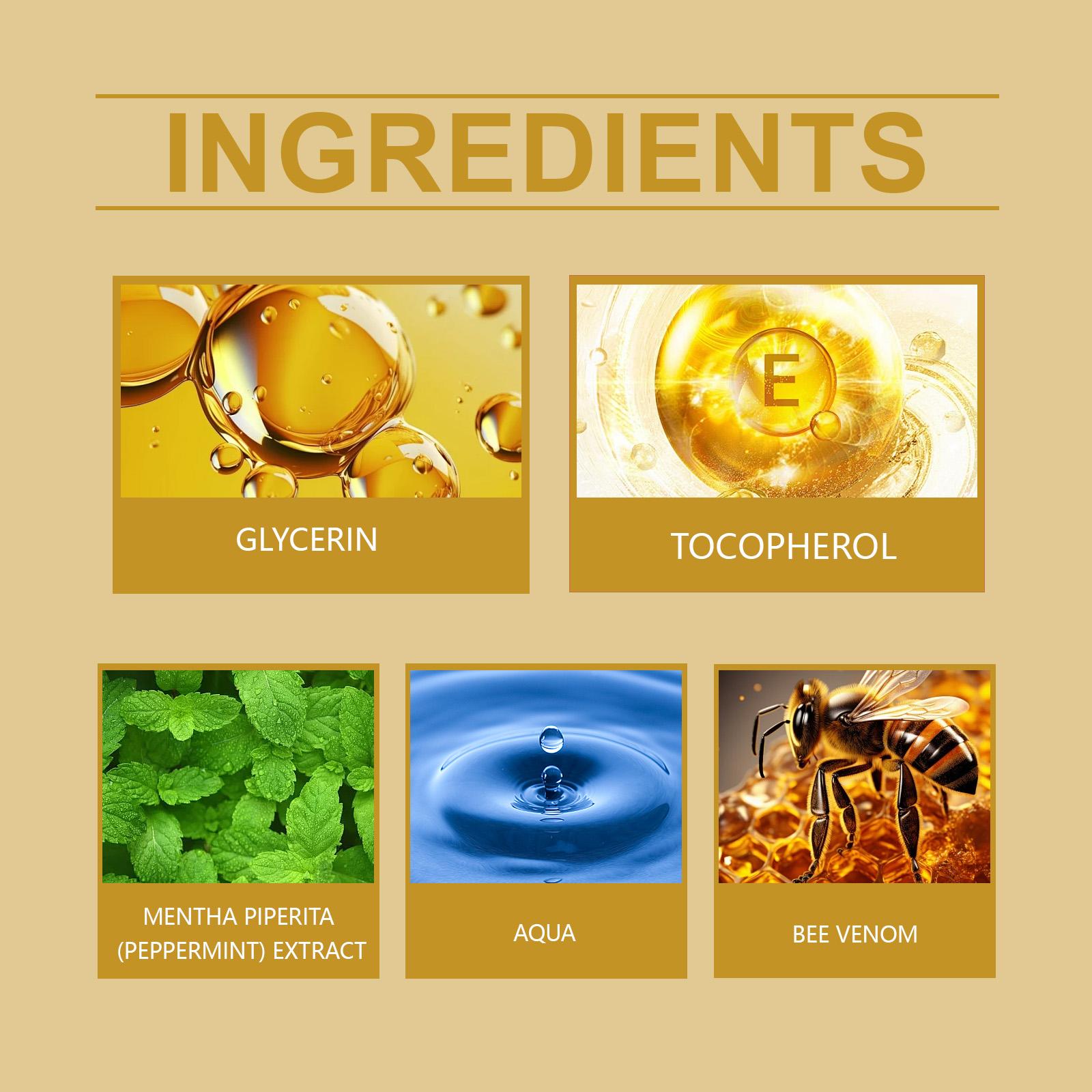 | 成分 | 蜂毒、薄荷提取物、甘油 |