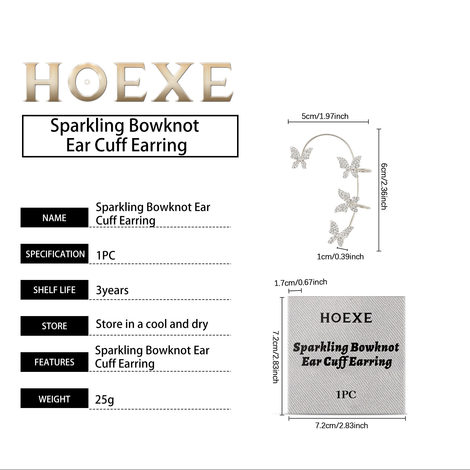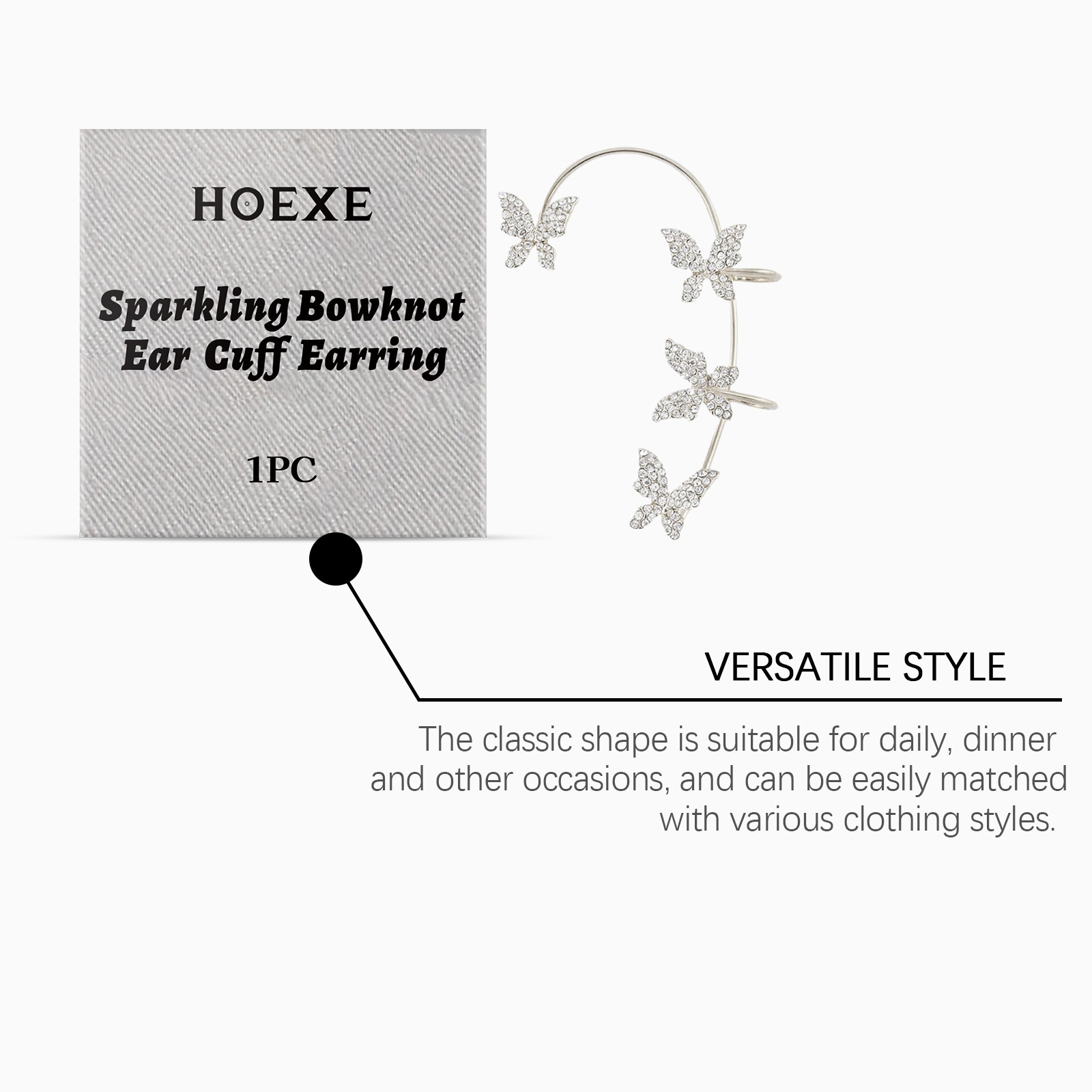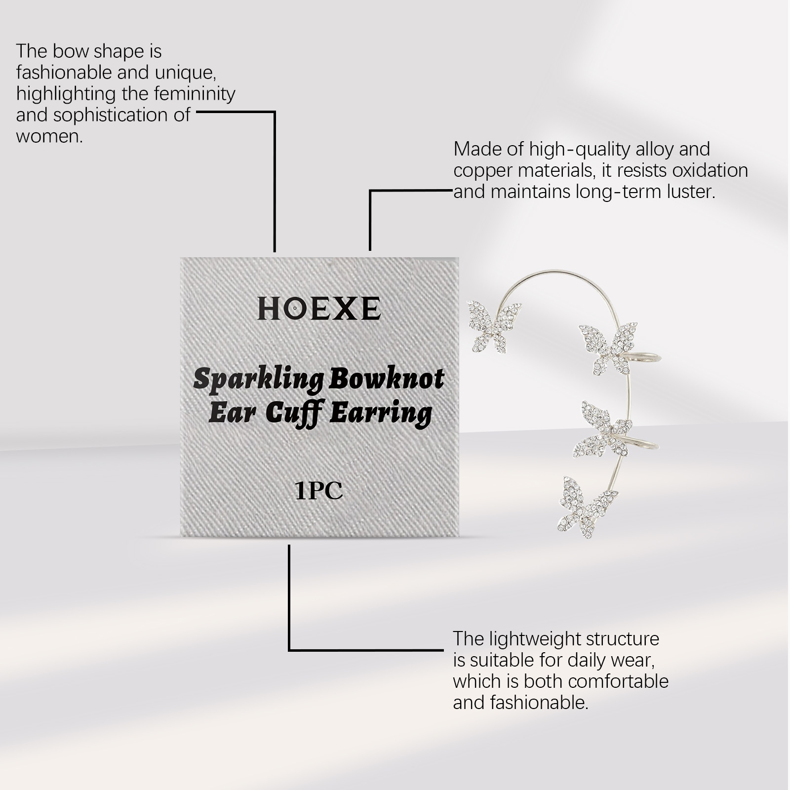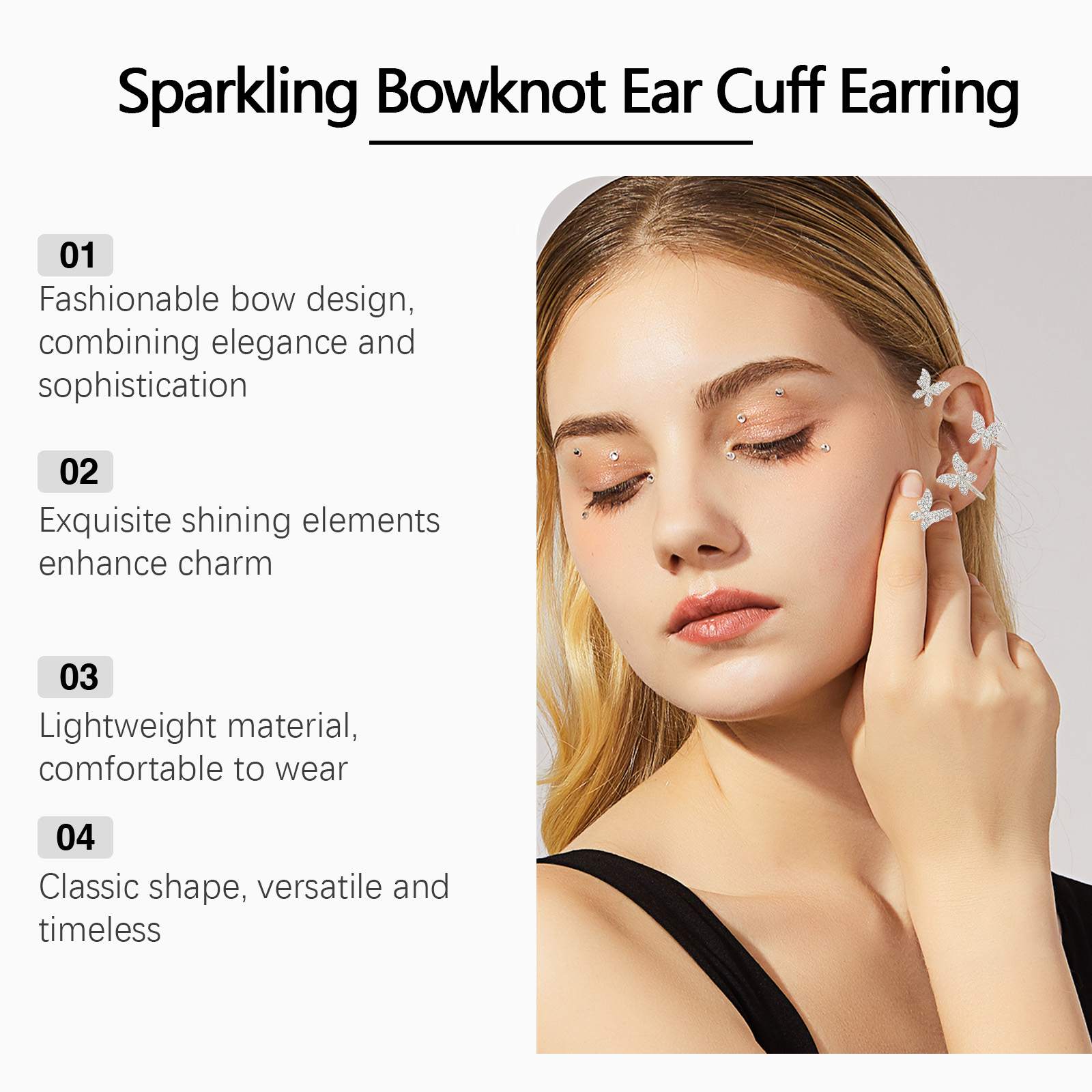 Hoexe Shiny Bow Ear Clip Diamond-Encrusting Butterfly Niche Ear Clip Fashion Everything Temperament No Piercing Ear Clip
