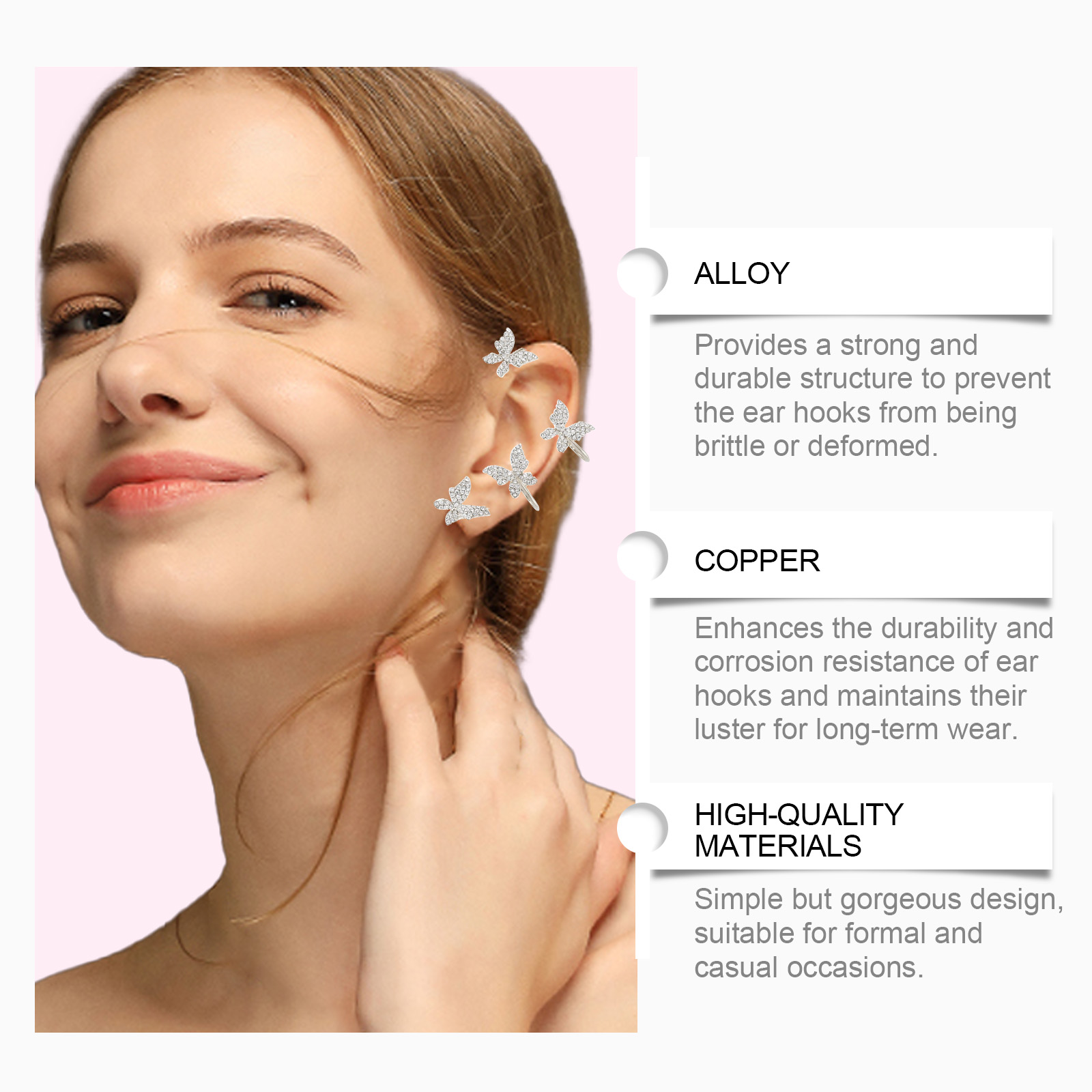 我们的闪亮蝴蝶结耳挂含有合金、铜。它可以在光线中闪闪发光,增加了整体的时尚感和吸引力。它的使用方法很简单:直接戴在耳朵上就可以了。并且可以长时间佩戴而不产生不适感,适合全天佩戴。
