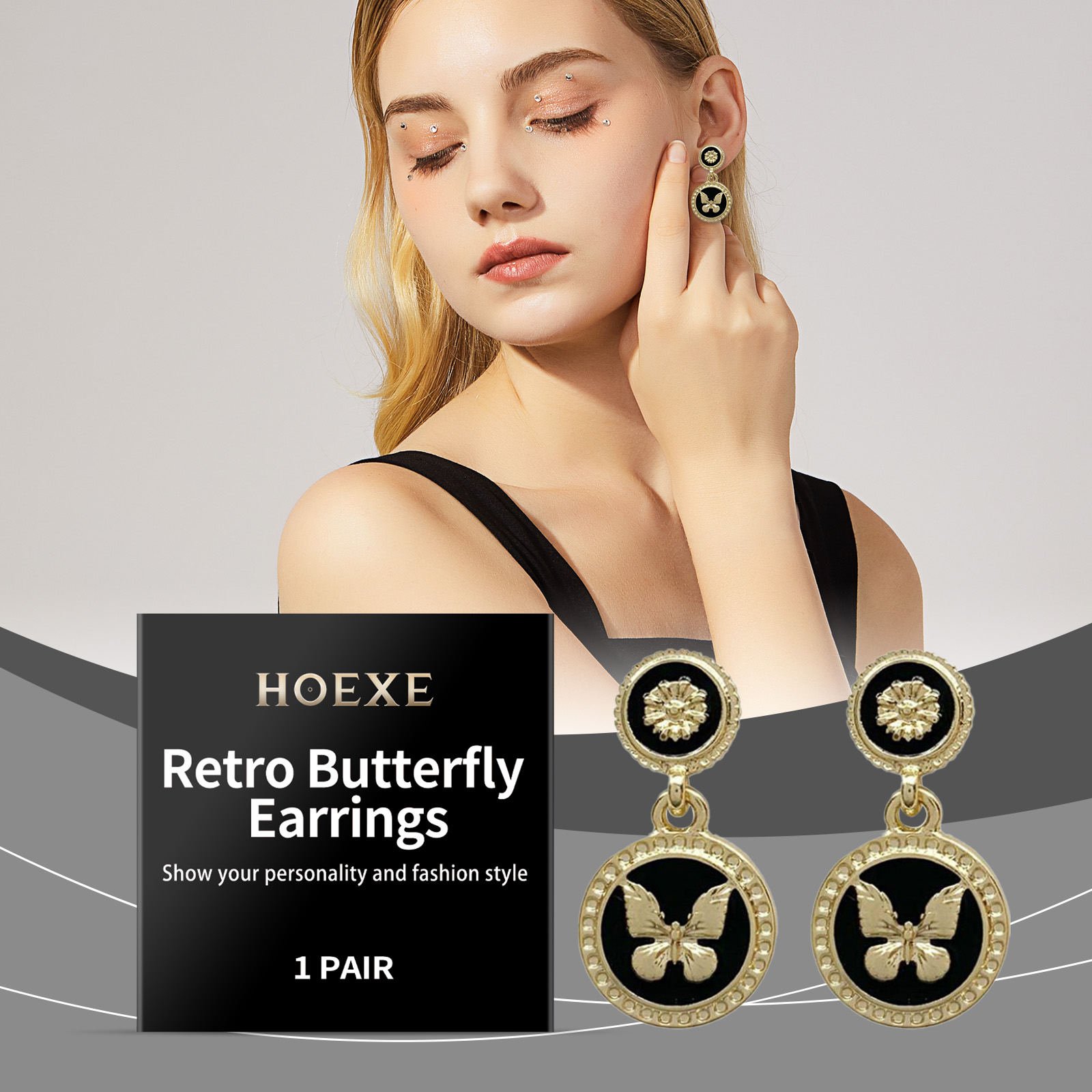 Hoexe Vintage Butterfly Earrings Fashion Personality Charm Niche Design Sense Light Decoration Simple Earrings
