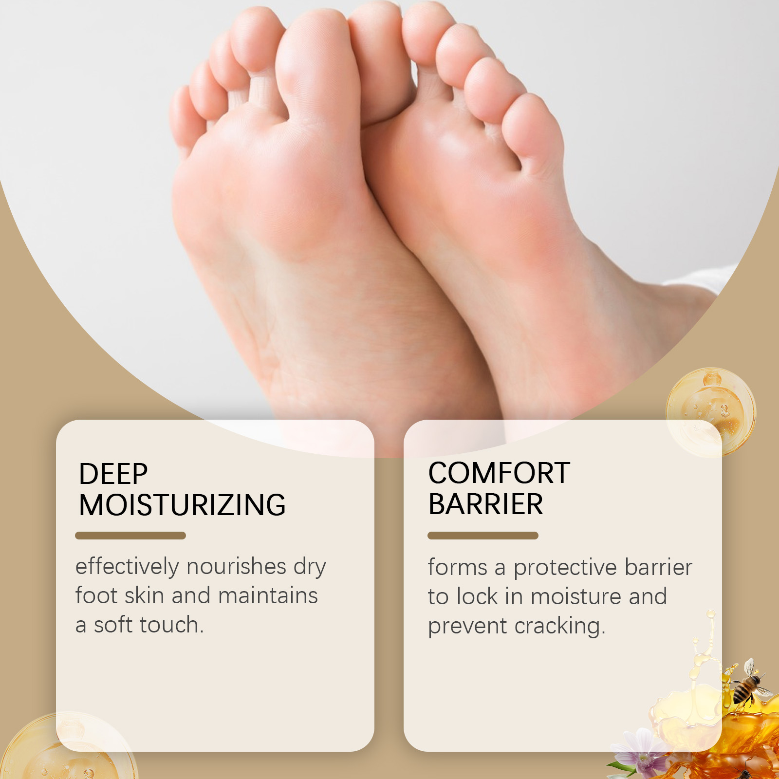 我们的干裂防护足霜含有三乙醇胺、可可籽脂、牛油果树果脂。它可以滋润干燥和裂缝区域,恢复脚部舒适度和弹性。它的使用方法很简单:清洁脚部皮肤;保持干燥;取适量本品均匀涂抹于脚部肌肤;轻轻打圈按摩促进吸收。并且可以形成保护屏障,锁住水分,防止开裂。