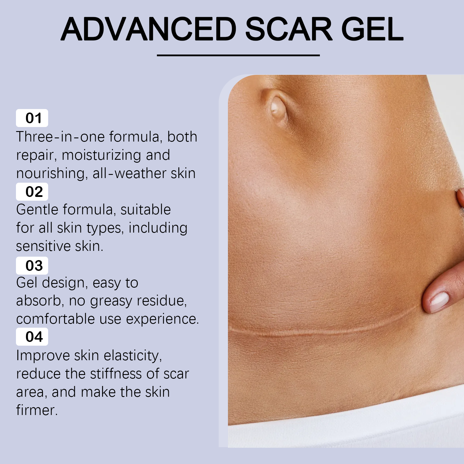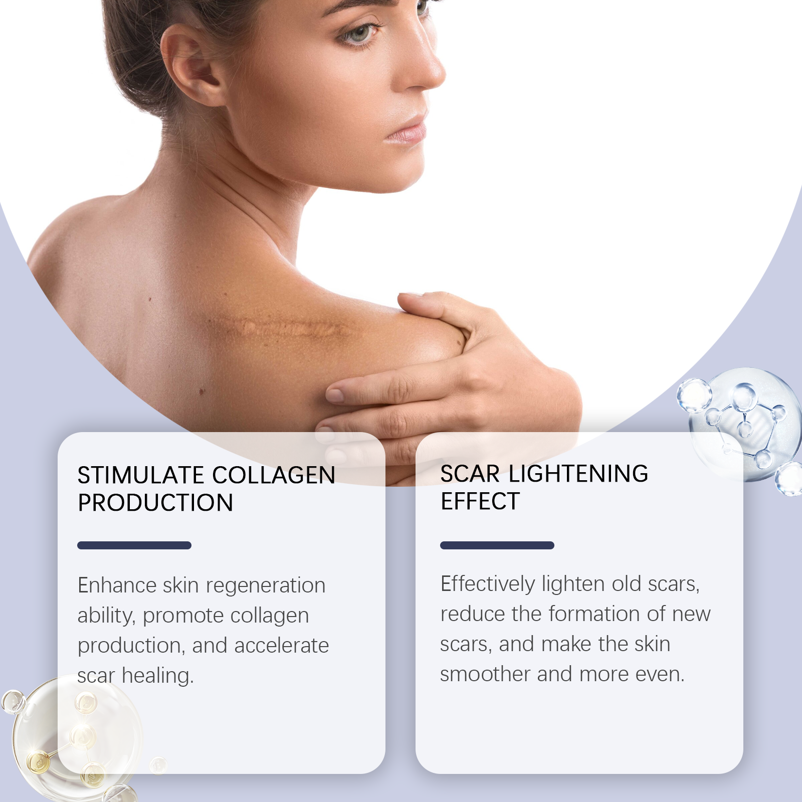 我们的淡化疤痕凝胶含有芦荟叶、洋葱、积雪草根。它可以增强皮肤再生能力,促进胶原生成,加速疤痕愈合。它的使用方法很简单:清洁疤痕处的皮肤,保持干燥。取适量本品均匀涂抹于疤痕处,待吸收即可。有效淡化旧疤,减少新疤形成,令肌肤光滑均匀。