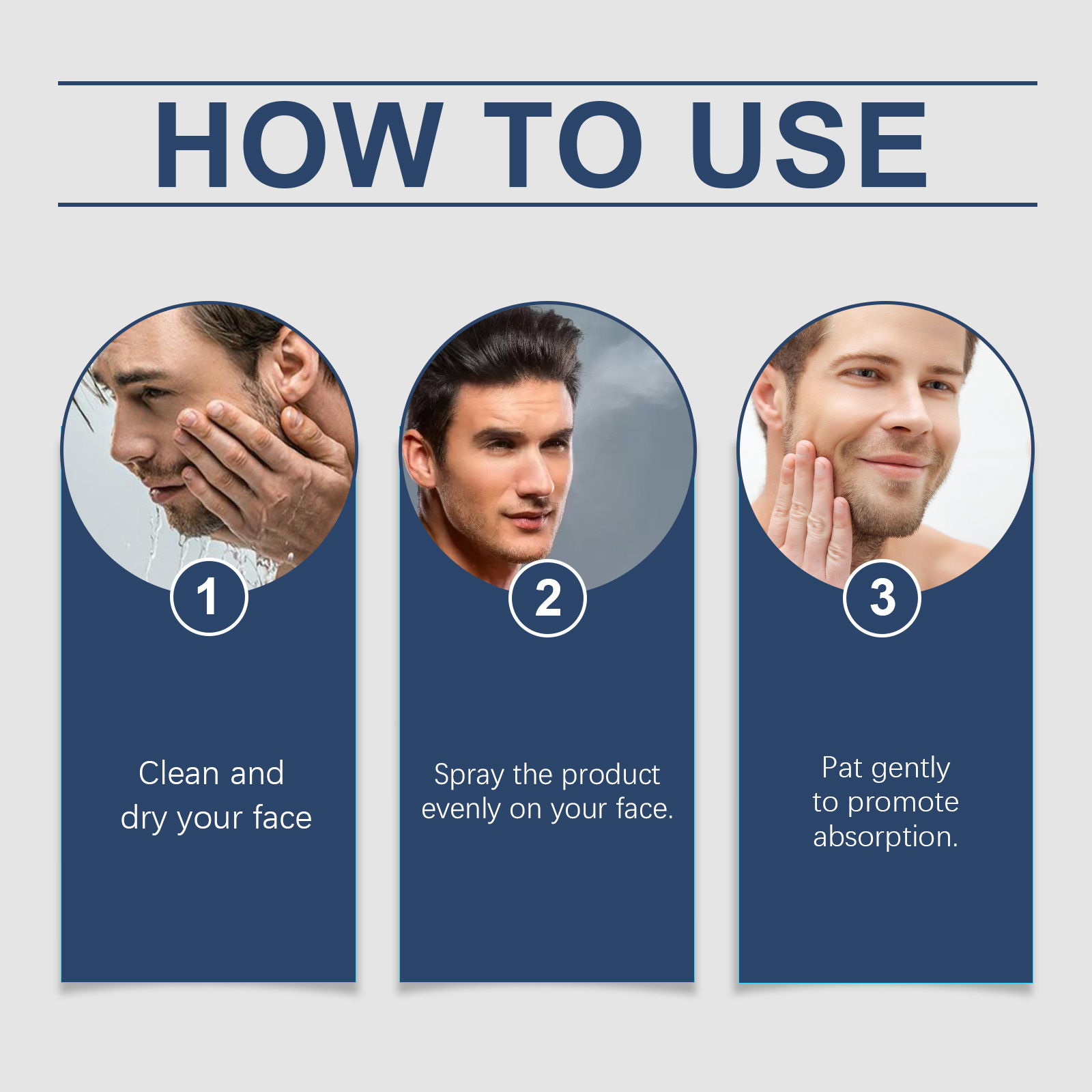 我们的男士面部保湿爽肤水含有光果甘草根提取物、透明质酸钠。它可以帮助补充肌肤水分,并使其整天保持滋润。它的使用方法很简单:清洁并擦干脸;将产品均匀喷于面部;轻拍以促进吸收。并且可以有效改善面部松弛增强肌肤弹性,令肌肤更紧致。