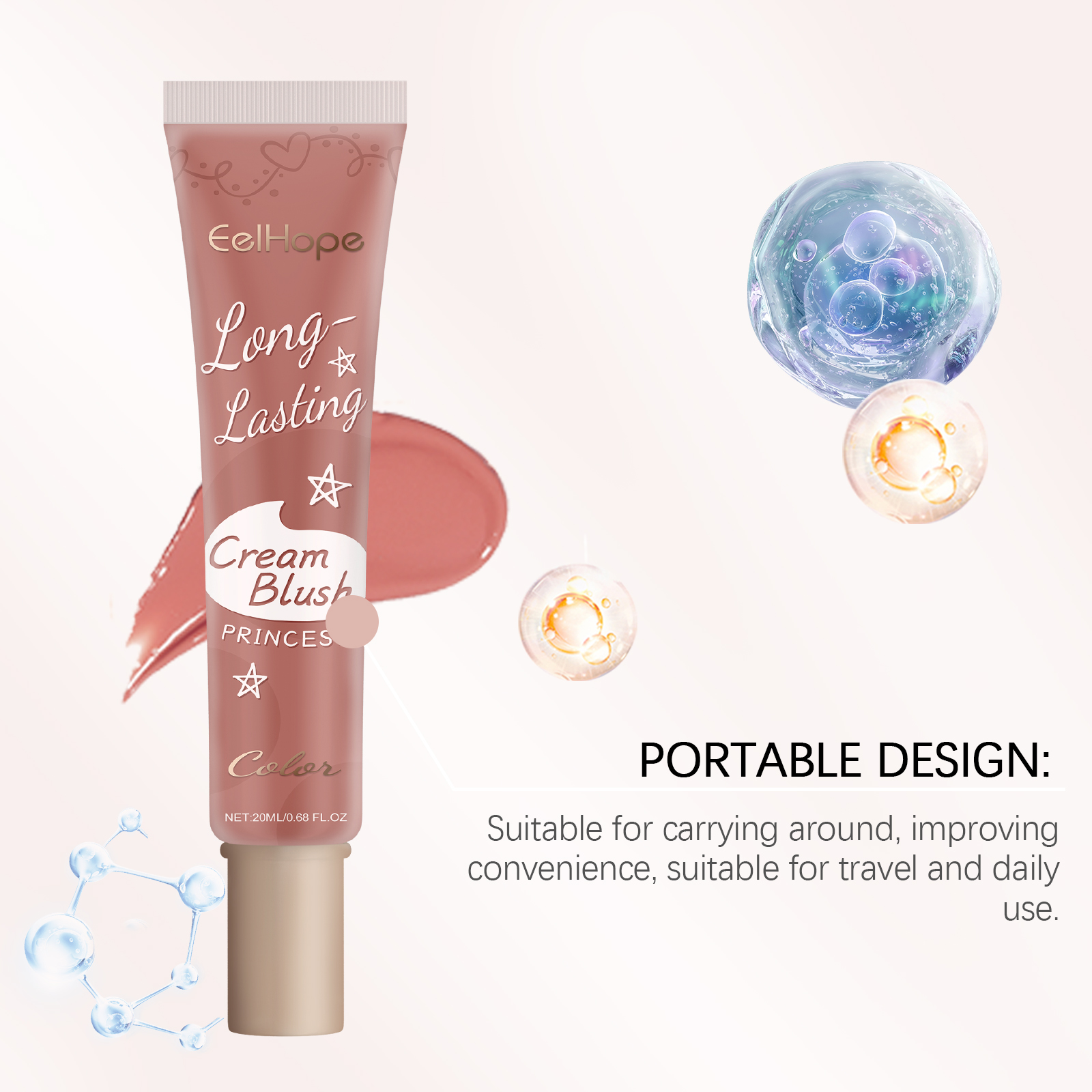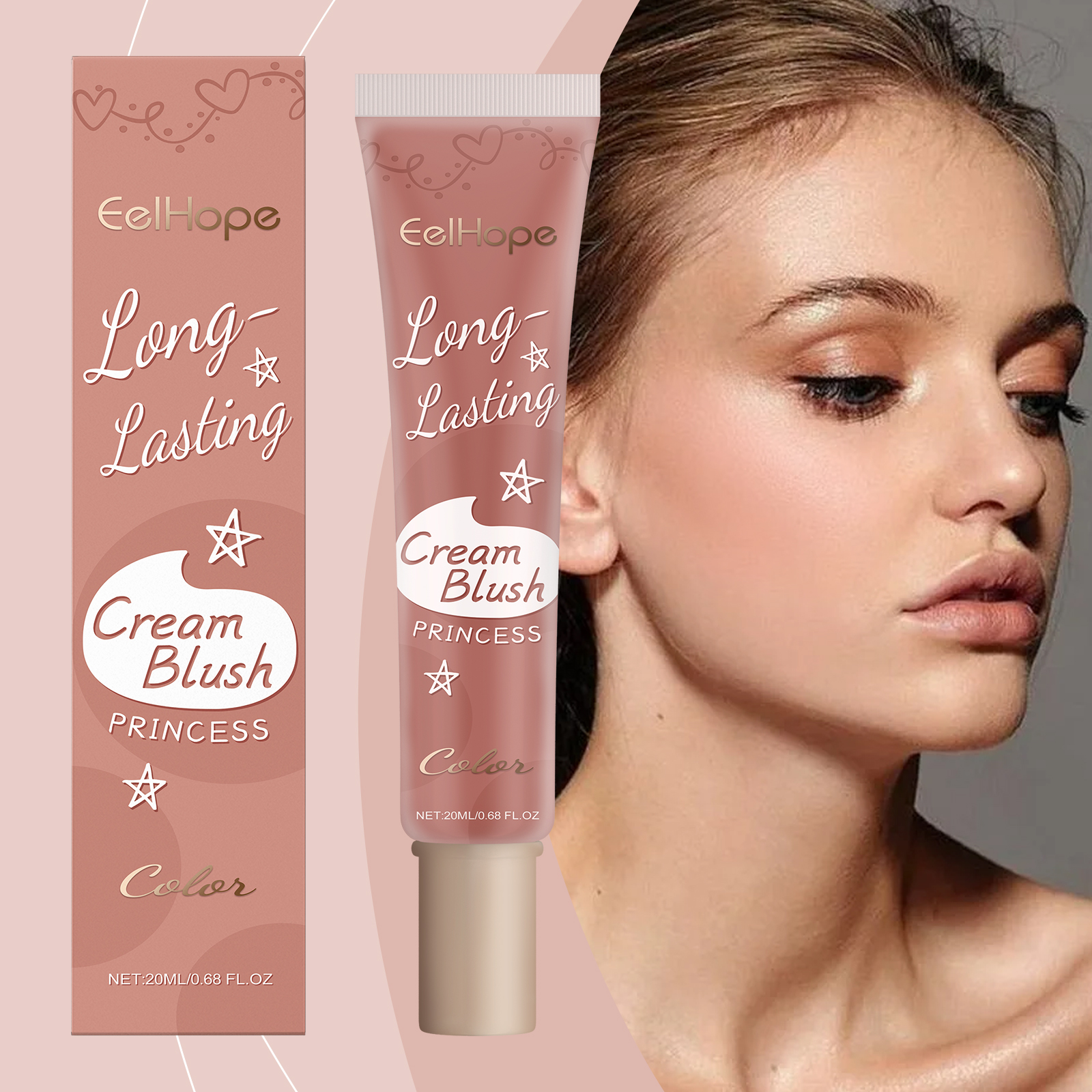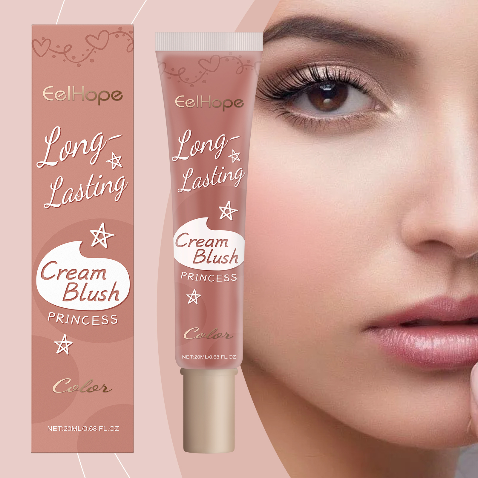 Eelhope Blush Cream, Long-Lasting Color Not Easy To Decolorize Delicate Natural Light Moisturizing Multi-Purpose Blush Cream