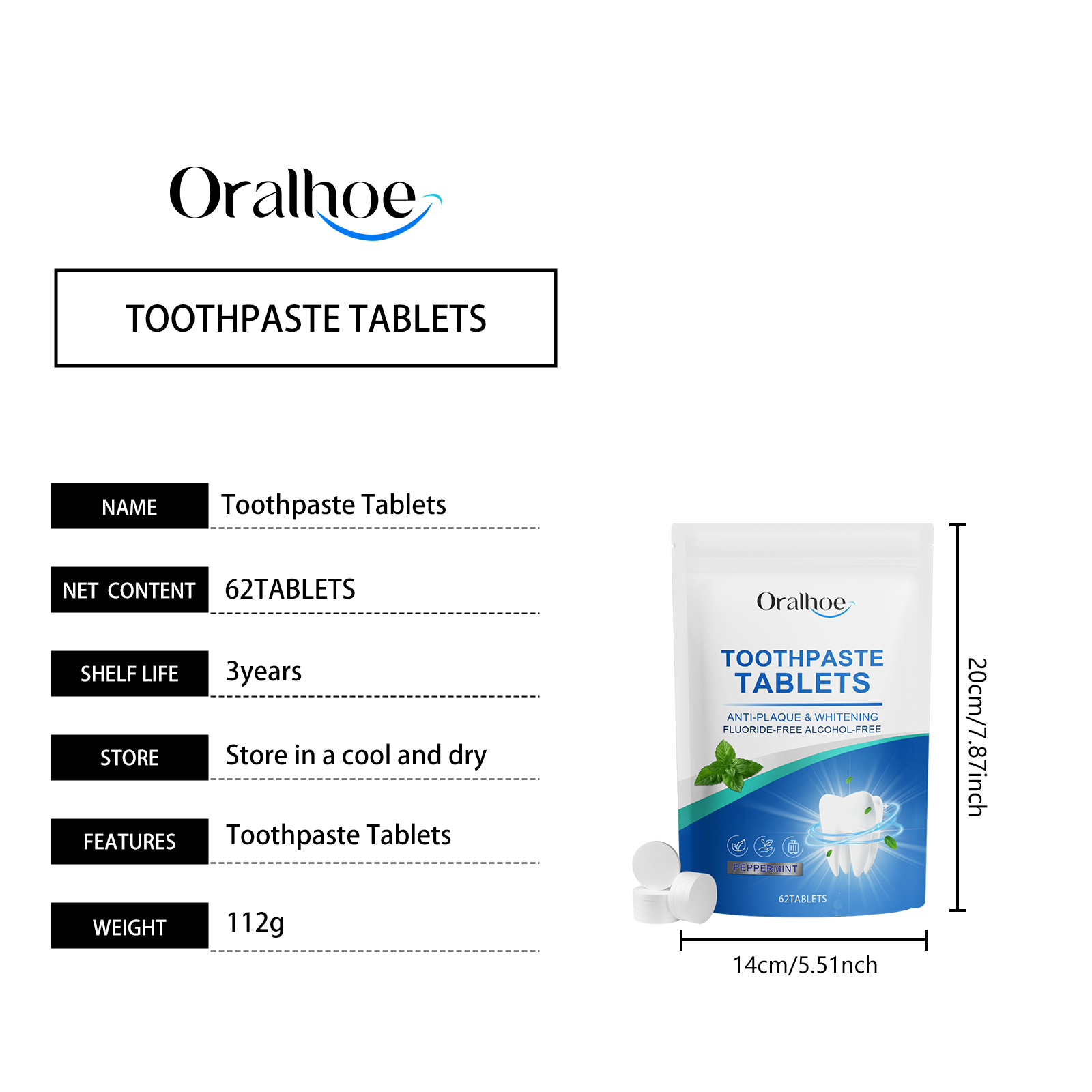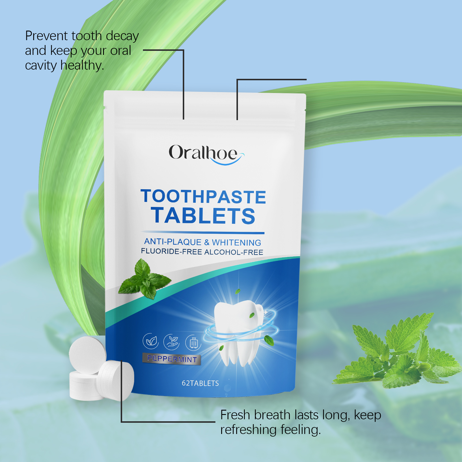 Oralhoe Mint Fresh Toothpaste, Clean Stains From Teeth Yellow Mouth Odor Brightening Face Care Tablets