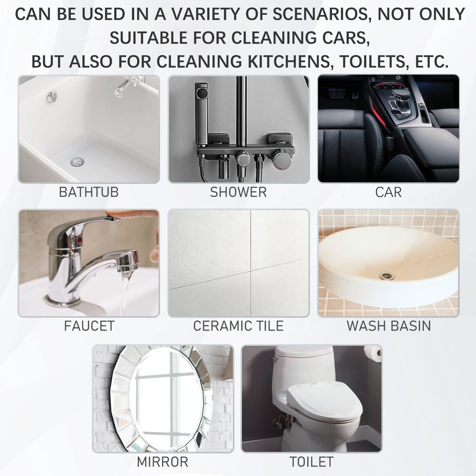 我们的汽车泡沫清洁剂含有去离子水,柠檬精,小苏打。它可以易于清洗车内污渍,延缓氧化,快速清除车内污渍。它的使用方法很简单:清理表面的杂物;按下喷雾器,将泡沫涂在脏的表面上;等待1-2分钟,让污渍溶解;用湿抹布擦去污垢。汽车泡沫清洁剂恢复原有光泽,保持清洁清新,使车内焕然一新。可用于多种场景,不仅适用于清洗汽车,也适用于清洗厨房、卫生间等。