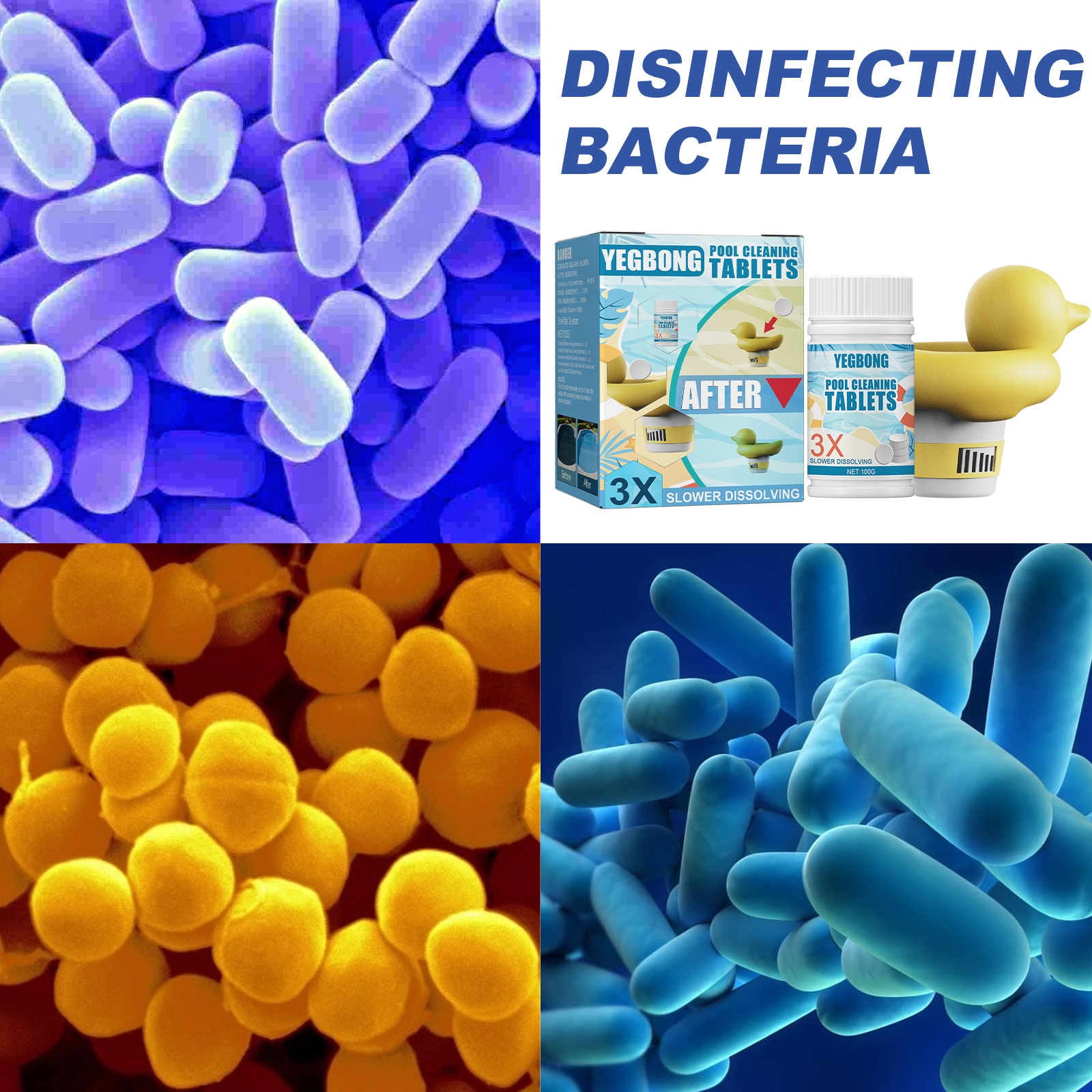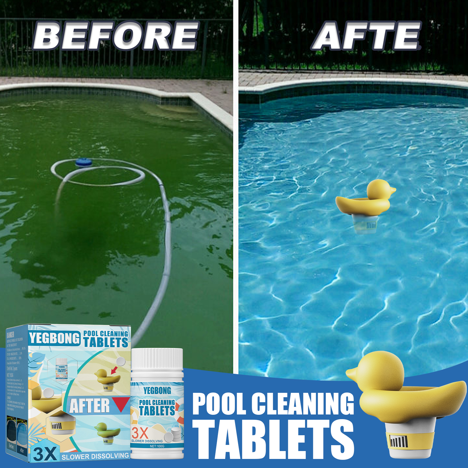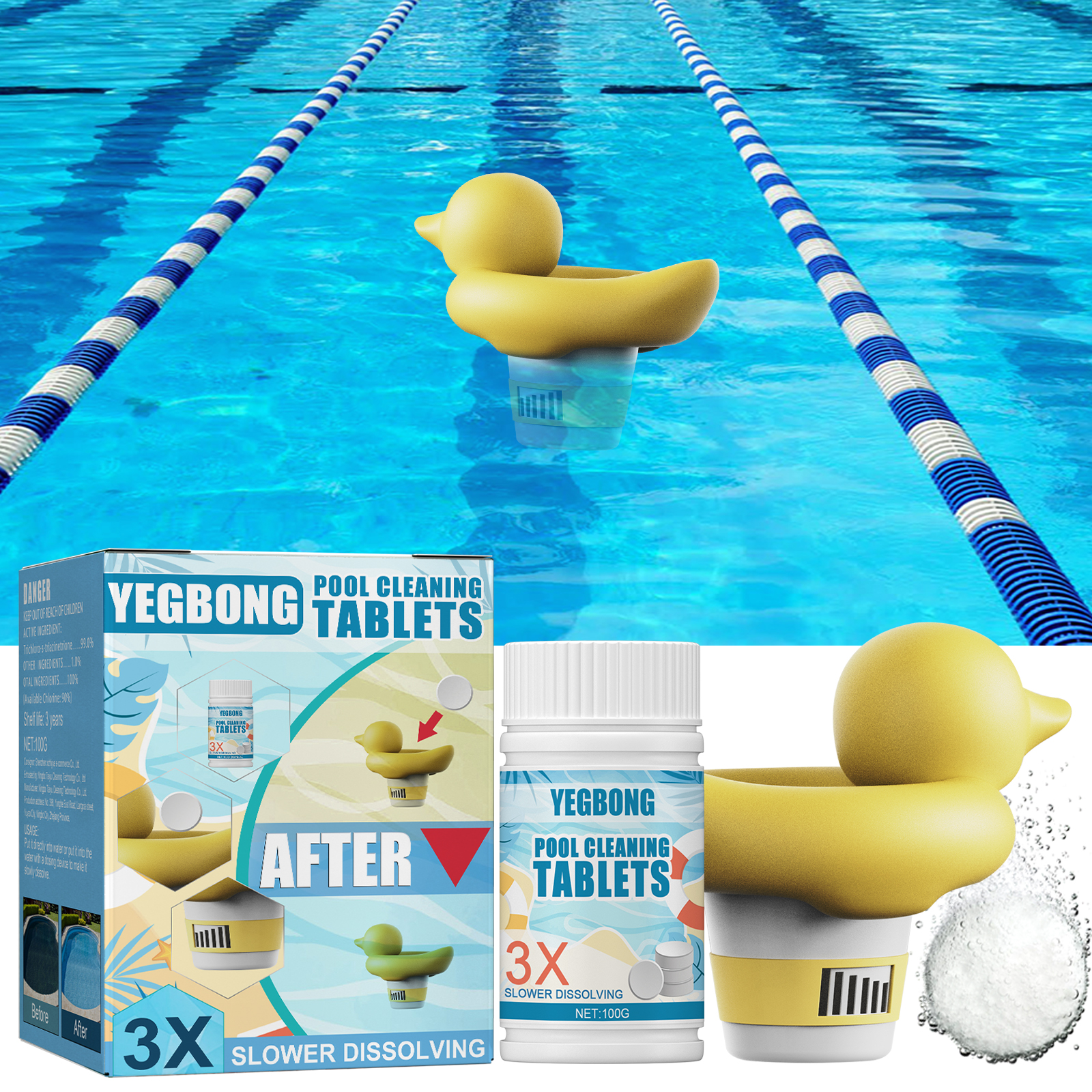 Yegbong Pool Cleaning Effervescent Tablets, Water Quality Cleaning Decontamination Clarifying Applicator Instant Hot Spring Bath Cleaning