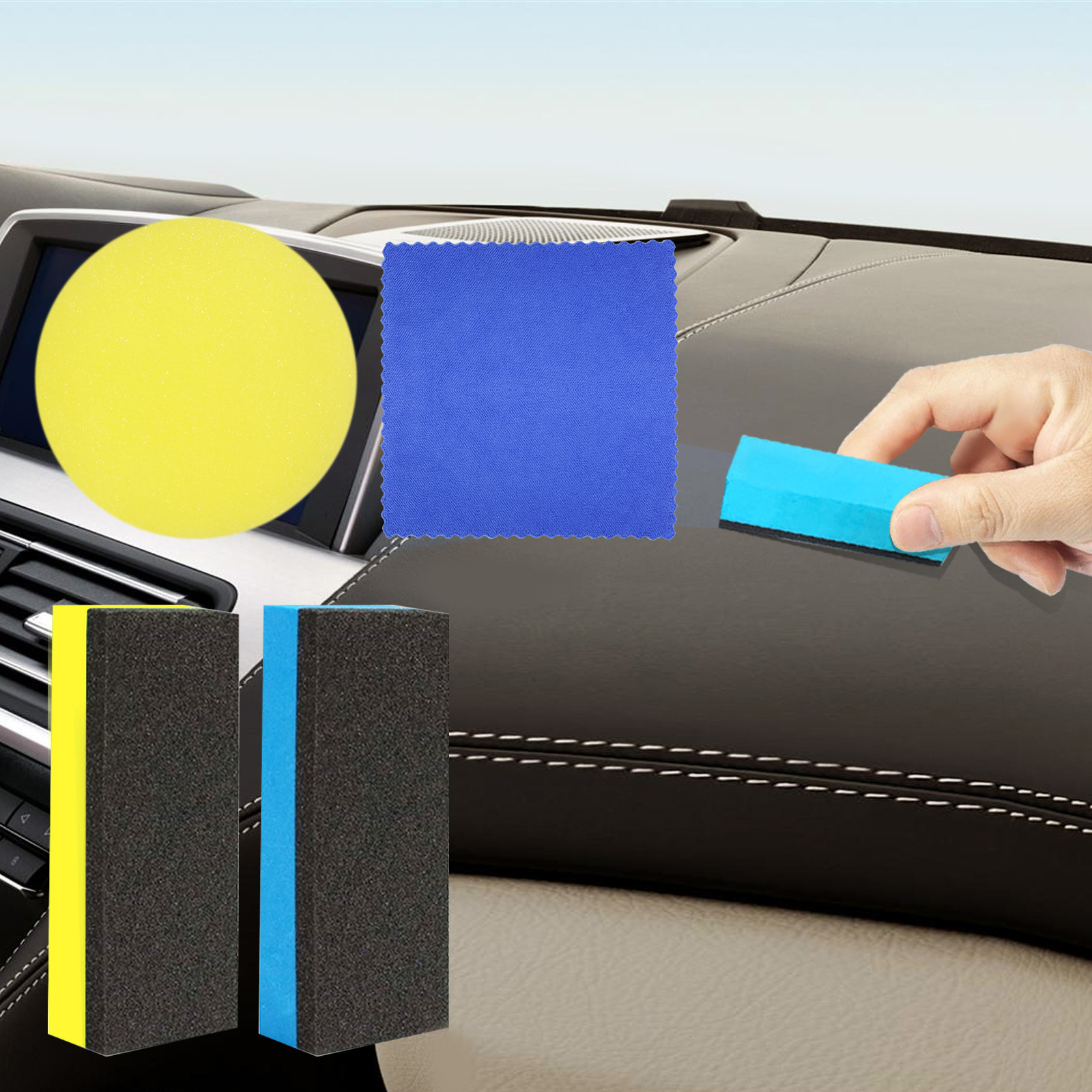 我们的圆形海绵。它可以帮助您快速清洁家具等各类物品,是清洁的最好帮手。它的使用方法很简单:1.先弄湿车身;2.将海绵浸入水中并轻轻擦拭车身;3.用清水冲洗。并且可以让您擦拭的地方变得焕然一新,高效去除各类污渍。