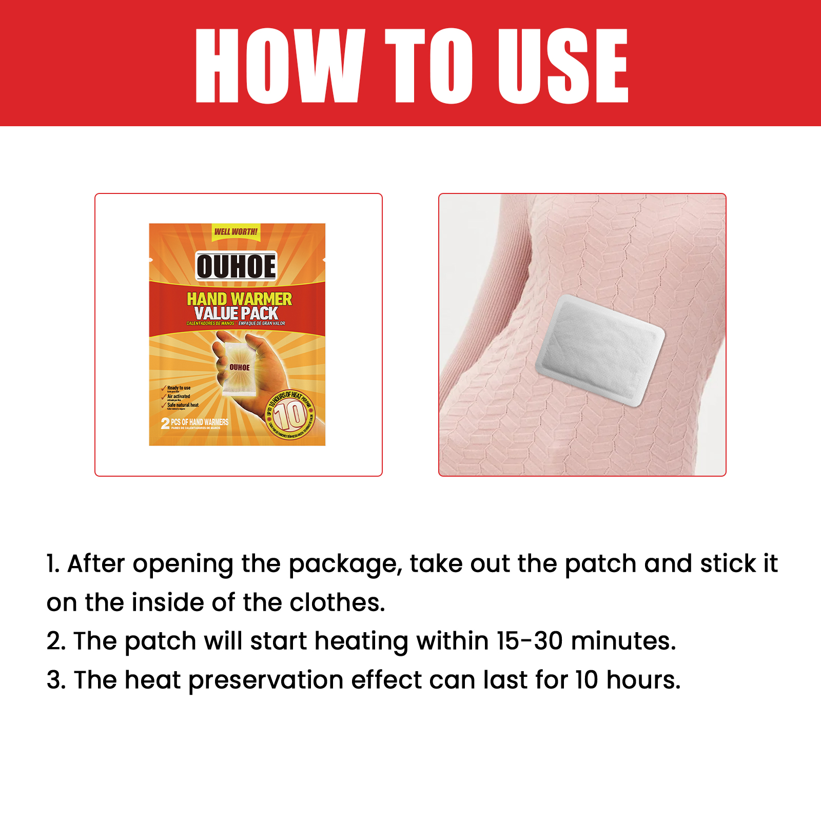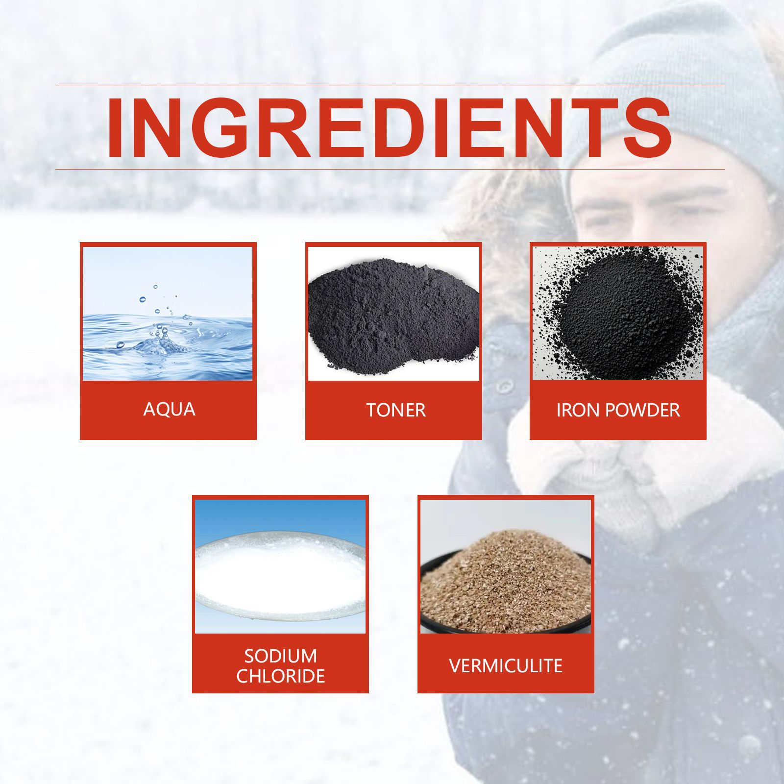 我们的暖手宝含有氯化钠、蛭石。它可以给你一整天温暖。它的使用方法很简单:打开本产品的真空包装,贴在口袋、手套、香烟等上。你也可以直接拿在手上保暖。并且可以超级持续加热,10小时的热量,温暖你的手、身体和脚。