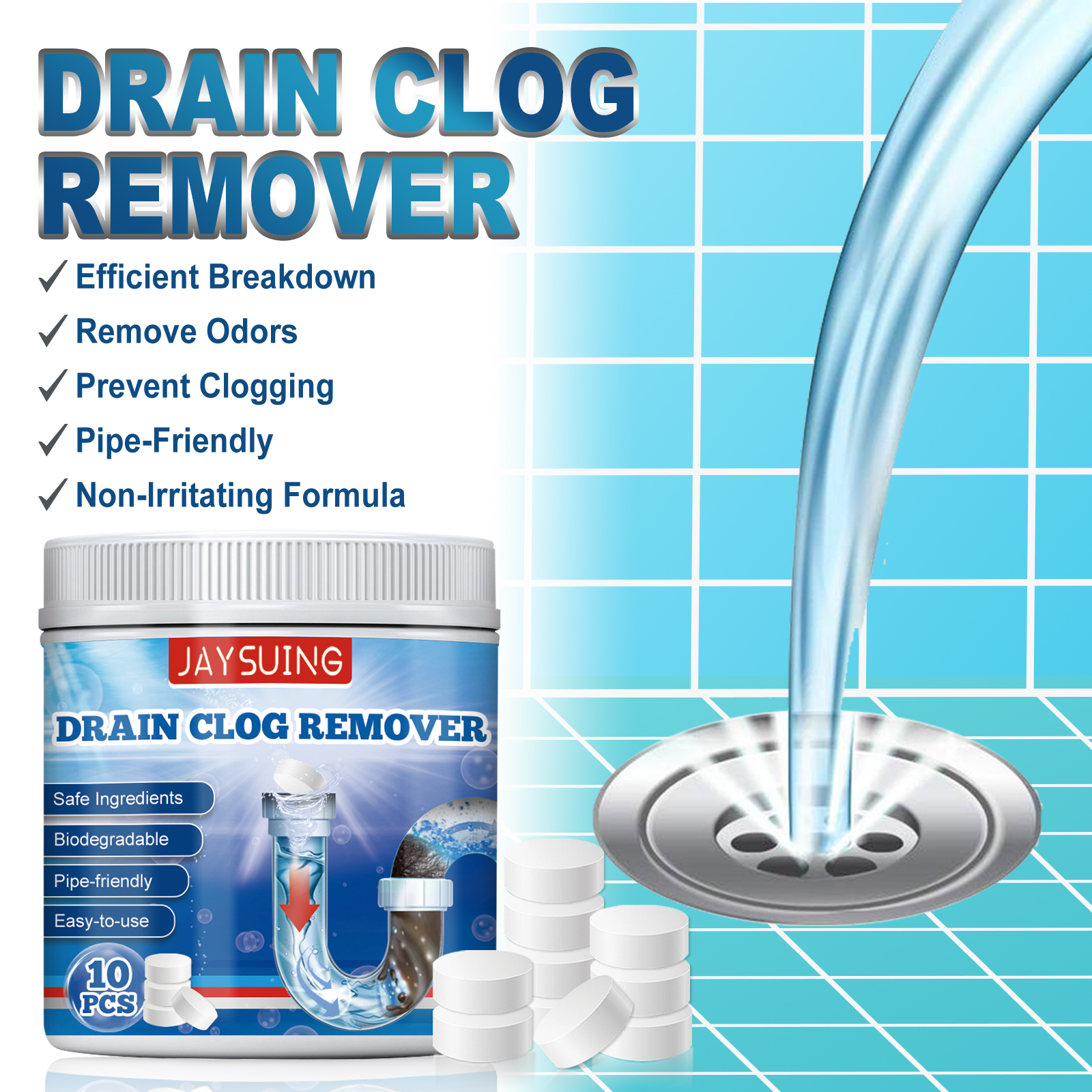 Jaysuing Drain Blockage Effervescent Tablet, Kitchen And Bathroom Drain Prevent Blockage Dredging Effervescent Tablet