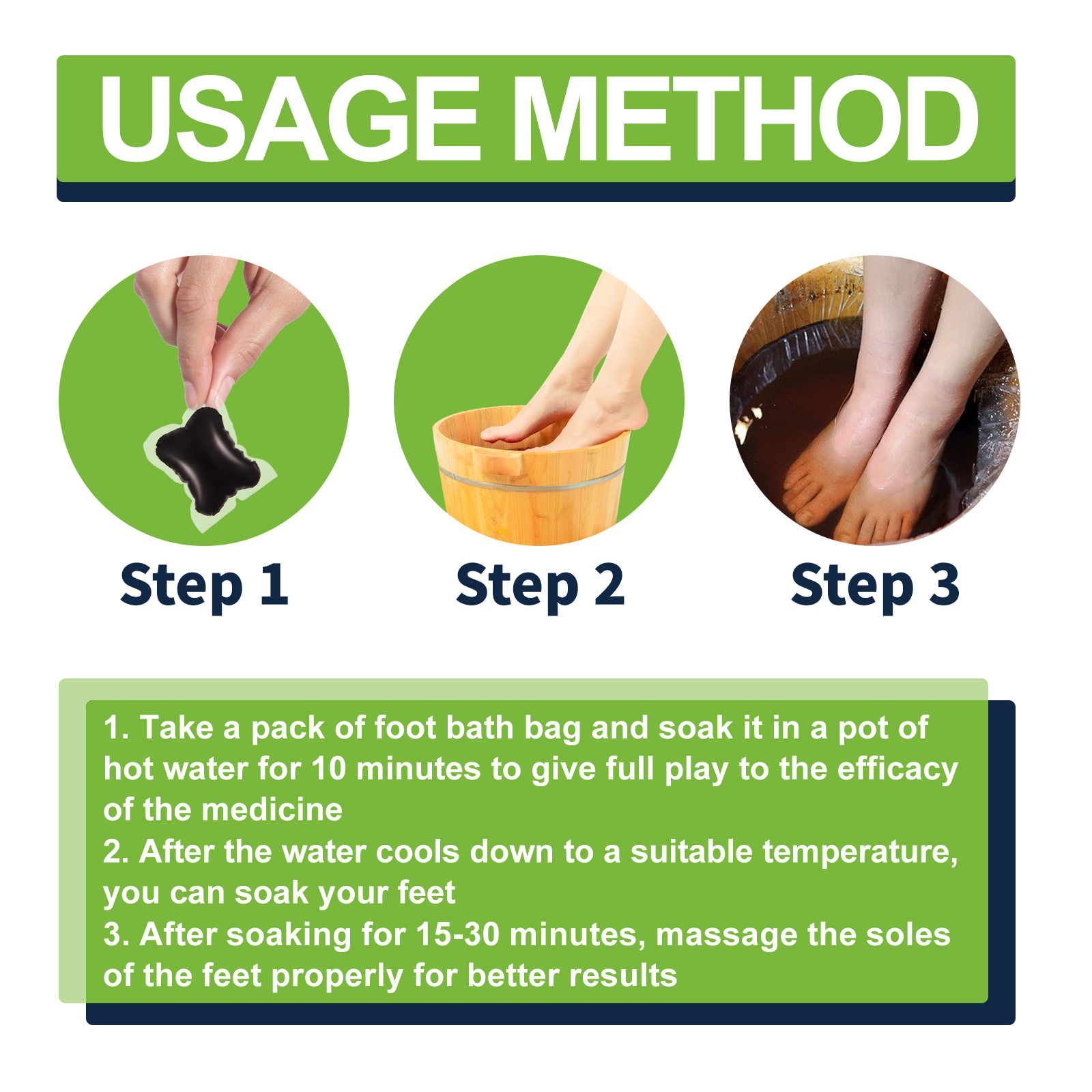 我们的草药足浴包含有甘油、番红花花提取物。它可以帮助缓解静脉曲张和减轻水肿,改善新陈代谢,舒缓疲倦、酸痛和发痒,还可以控制血糖,同时促进血液流动,以缓解疲劳和压力。此外,它还含有保湿成分,为干燥粗糙的皮肤提供水分和活力。它的使用方法很简单:取一包足浴袋,在热水中浸泡10分钟,就能充分发挥药物的功效,等水冷却到合适的温度后,就可以泡脚了,浸泡15-30分钟后,适当按摩脚底,效果更佳。帮助减肥和重塑体型,深入渗透活性成分,最大限度地被人体吸收,促进血液流动,缓解疲劳和压力。