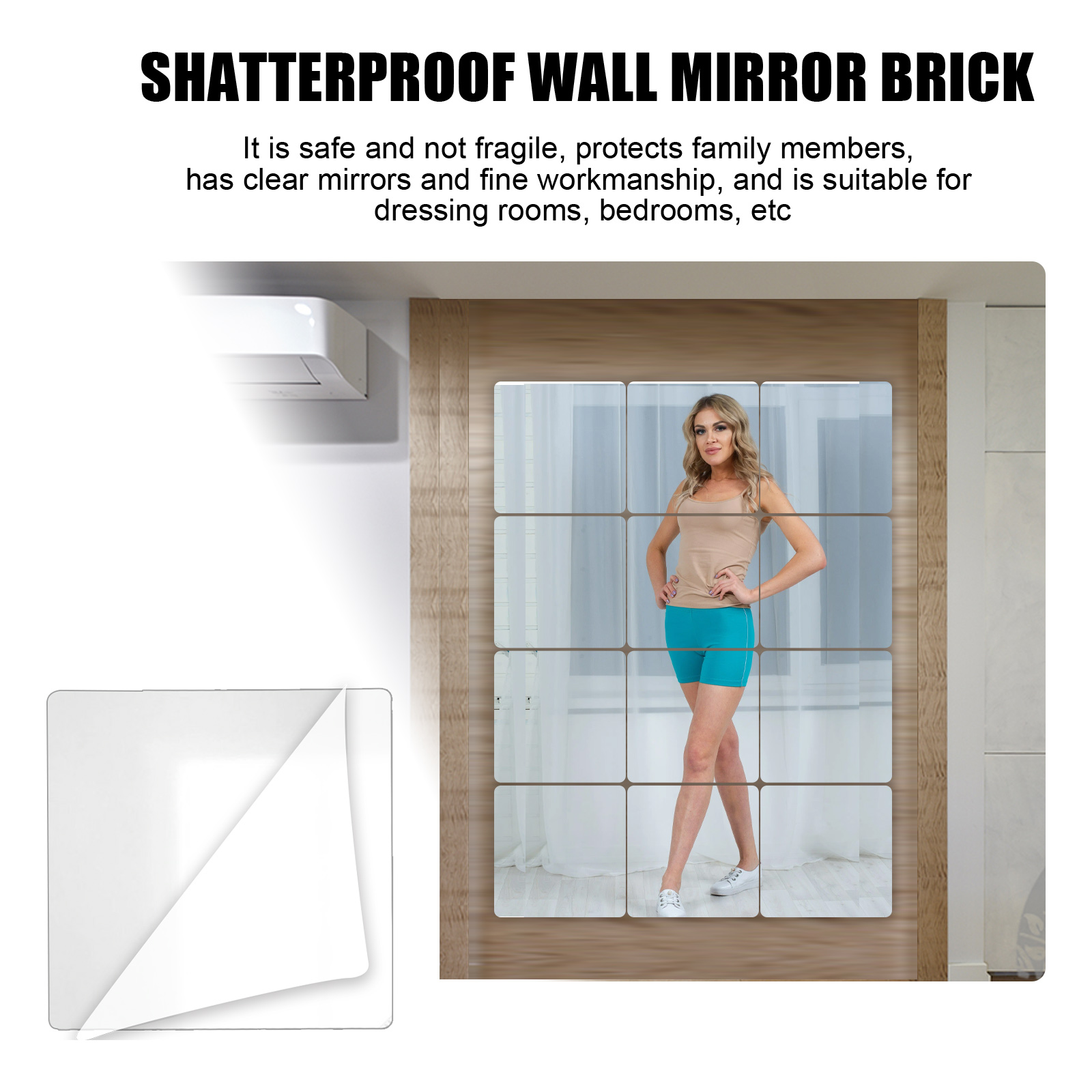 我们的防摔墙面镜子含有亚克力。它可安装在光滑的墙壁和家居上。它的使用方法很简单:先撕下保护膜(如果不撕掉保护膜,镜子会模糊不清)然后贴在你想要的家具位置。使用了你可以拥有一面安全又清晰的镜子,好好欣赏自己的美。