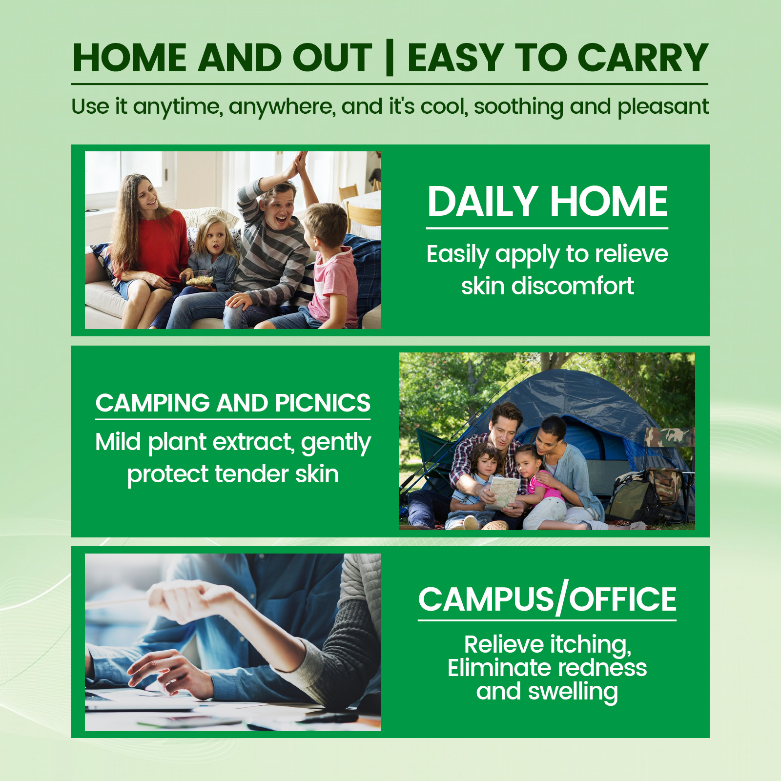我们的驱蚊棒含有紫草提取物、薄荷醇、山茶籽油。它可以缓解皮肤瘙痒,改善红肿,并防止蚊虫叮咬,清凉止痒。它的使用方法很简单:旋出适量的护肤霜,涂在手、脚或身体皮肤上,轻轻按摩使其均匀即可。长效驱蚊、有效缓解蚊虫叮咬引发的皮肤瘙痒,还您一夜好眠。
