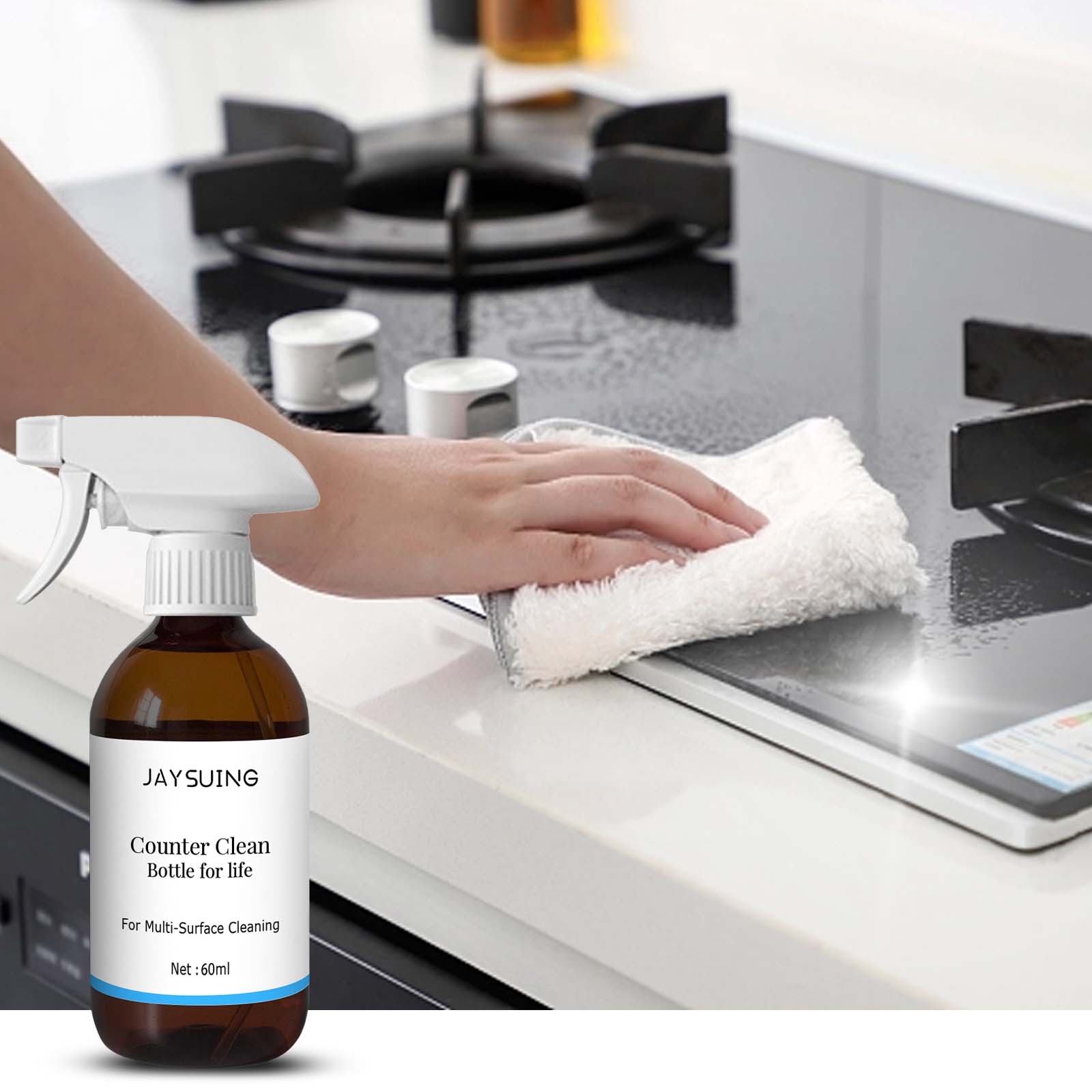 我们的家居清洁剂含有去离子水,橙皮油,桉树油。它可以防污、易清洁,轻轻快速去除表面顽固污渍,长效去除重油污,使家居环境重获光泽,一尘不染。它的使用方法很简单:打开喷雾开关;按下喷雾器,将其喷在需要清洁的区域;等待2-3分钟,让污渍溶解;用湿布擦干净。使用方便,只需喷擦即可,省时省力,且去污能力强,不损坏;可用于浴室、厨房等各种场所。