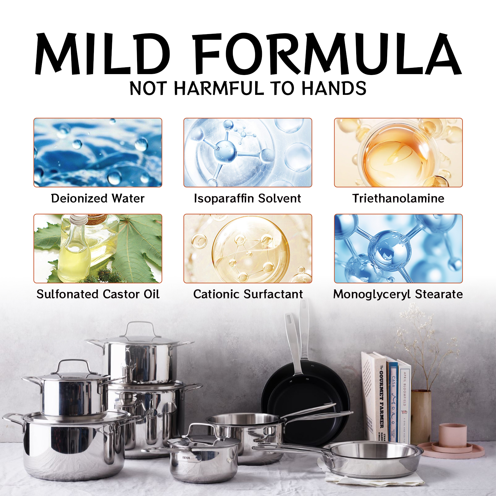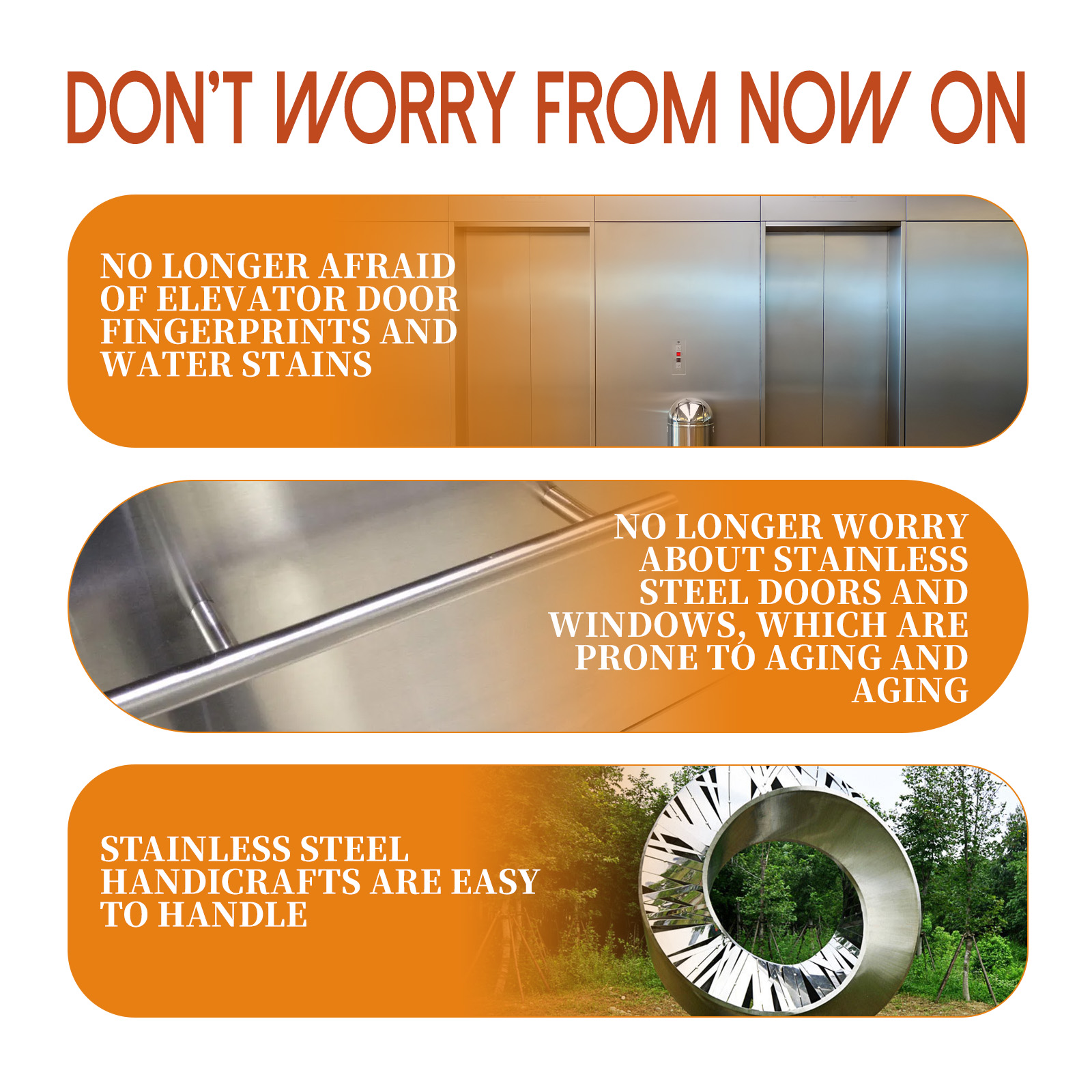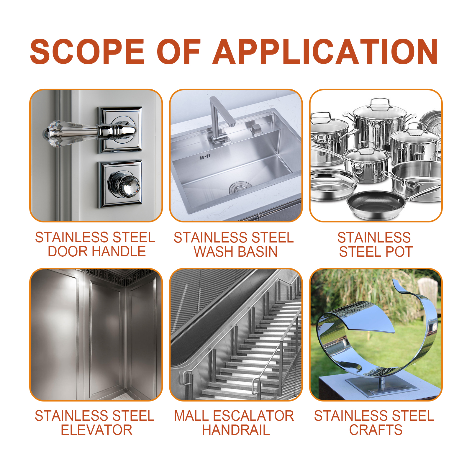 我们的不锈钢保养剂含有去离子水,异链烷溶剂,三乙醇胺。它可以快速去除不锈钢表面的指纹和水渍,使不锈钢表面恢复原有光泽。它的使用方法很简单:转动开关打开喷雾器;将喷剂均匀地喷在不锈钢表面;用干毛巾擦拭和抛光。不锈钢保养剂可以在不锈钢表面形成保护膜,保持表面,延长物品的使用寿命;它是容易和快速使用。只需喷洒和擦拭,以增加物品的光泽,使其易于维护,在清洁过程中不会损坏表面或留下痕迹。