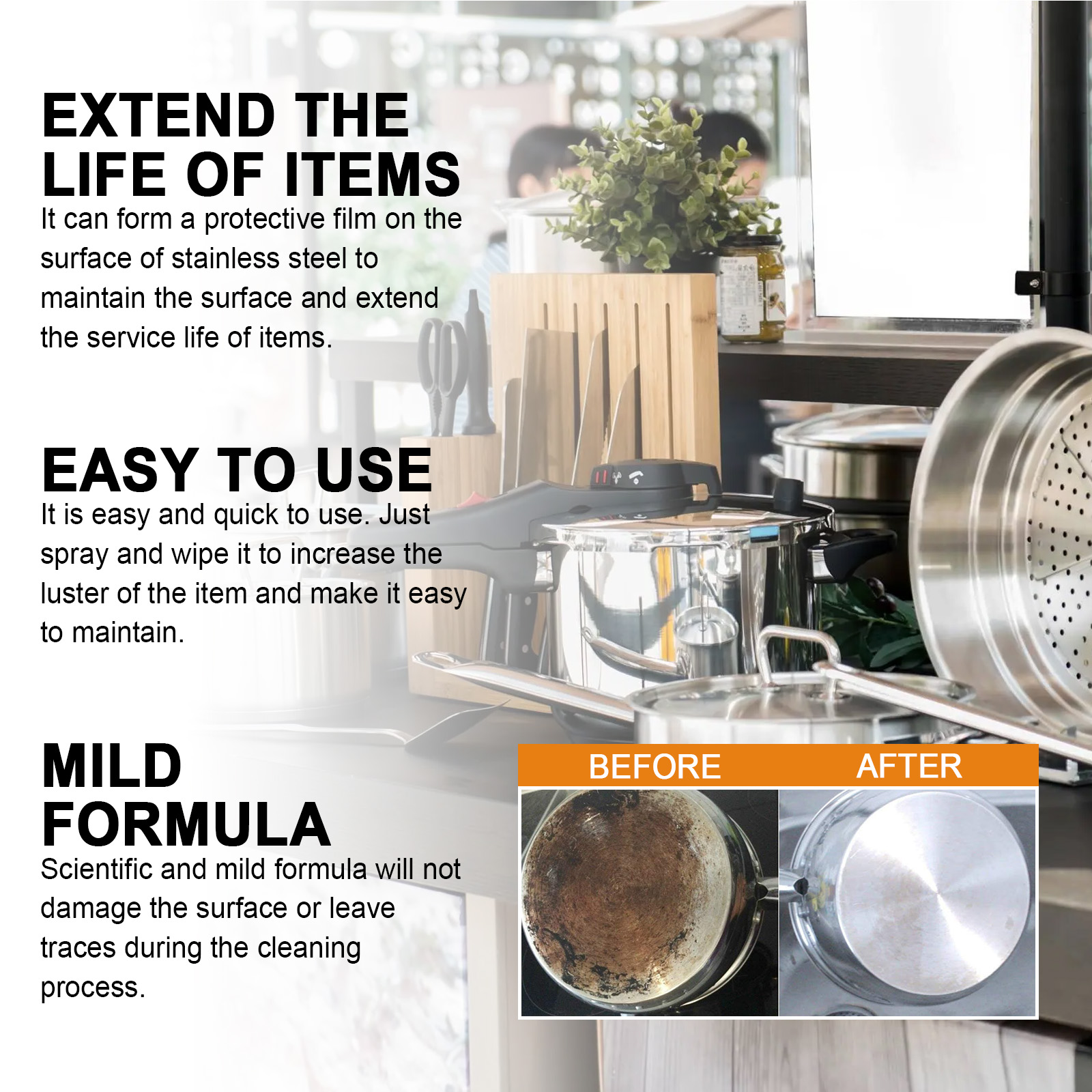 Jaysuing Stainless Steel Maintenance Agent, Kitchen Pot Grease Pot Bottom Black Scale Rust Removal Anti-rust Cleaner