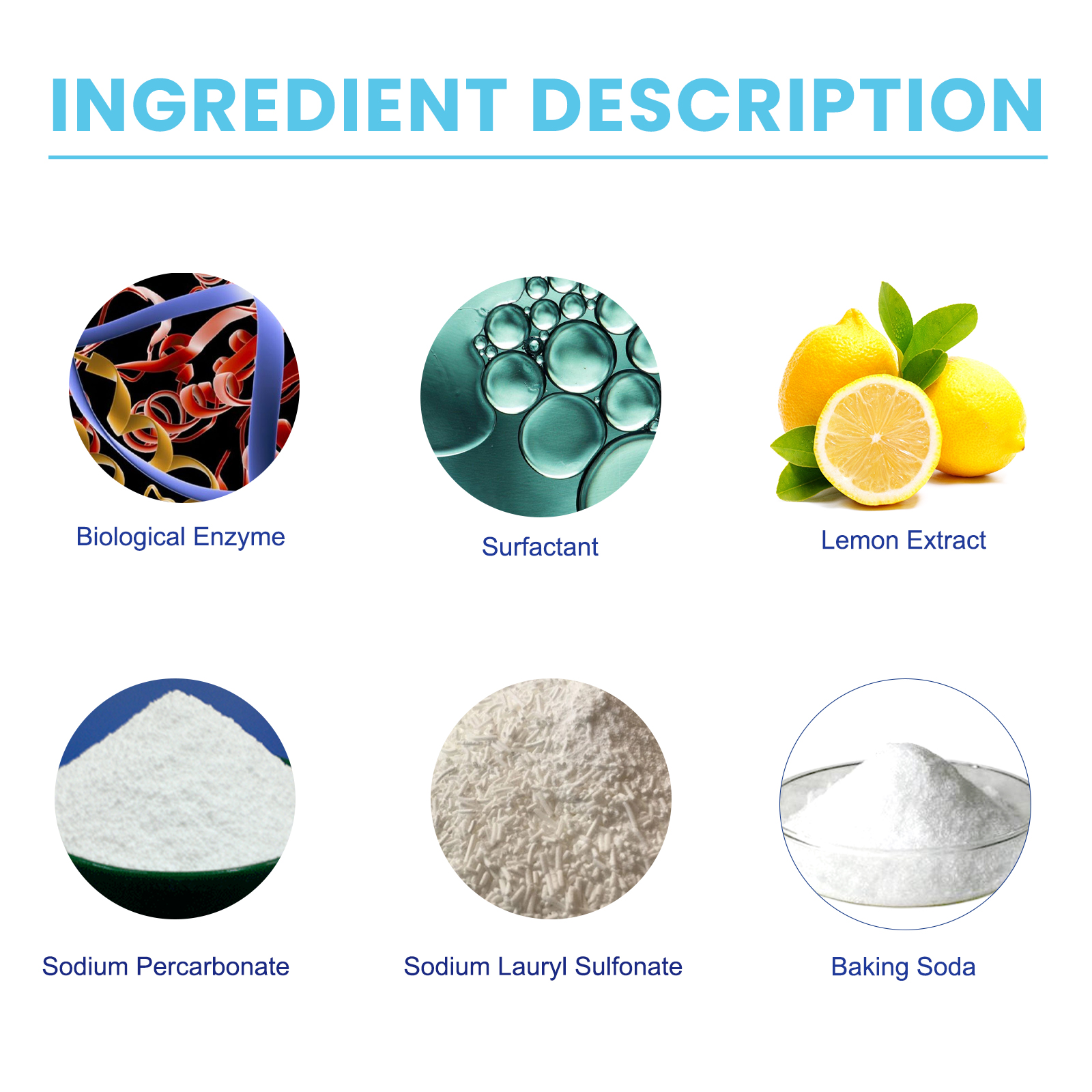 | 成分 | 小苏打,柠檬提取物,过碳酸钠 |