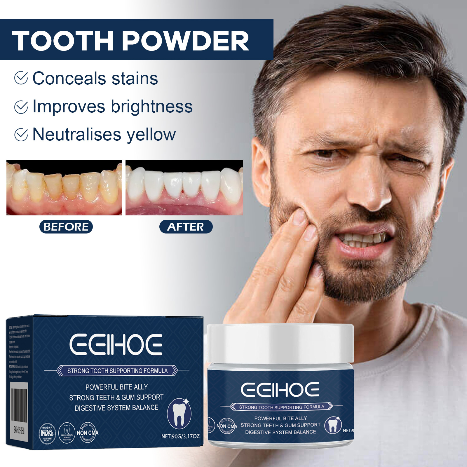 EELHOE Tooth Whitening Powder, Stain Removal Whitening Teeth Fresh Breath Oral Care Powder