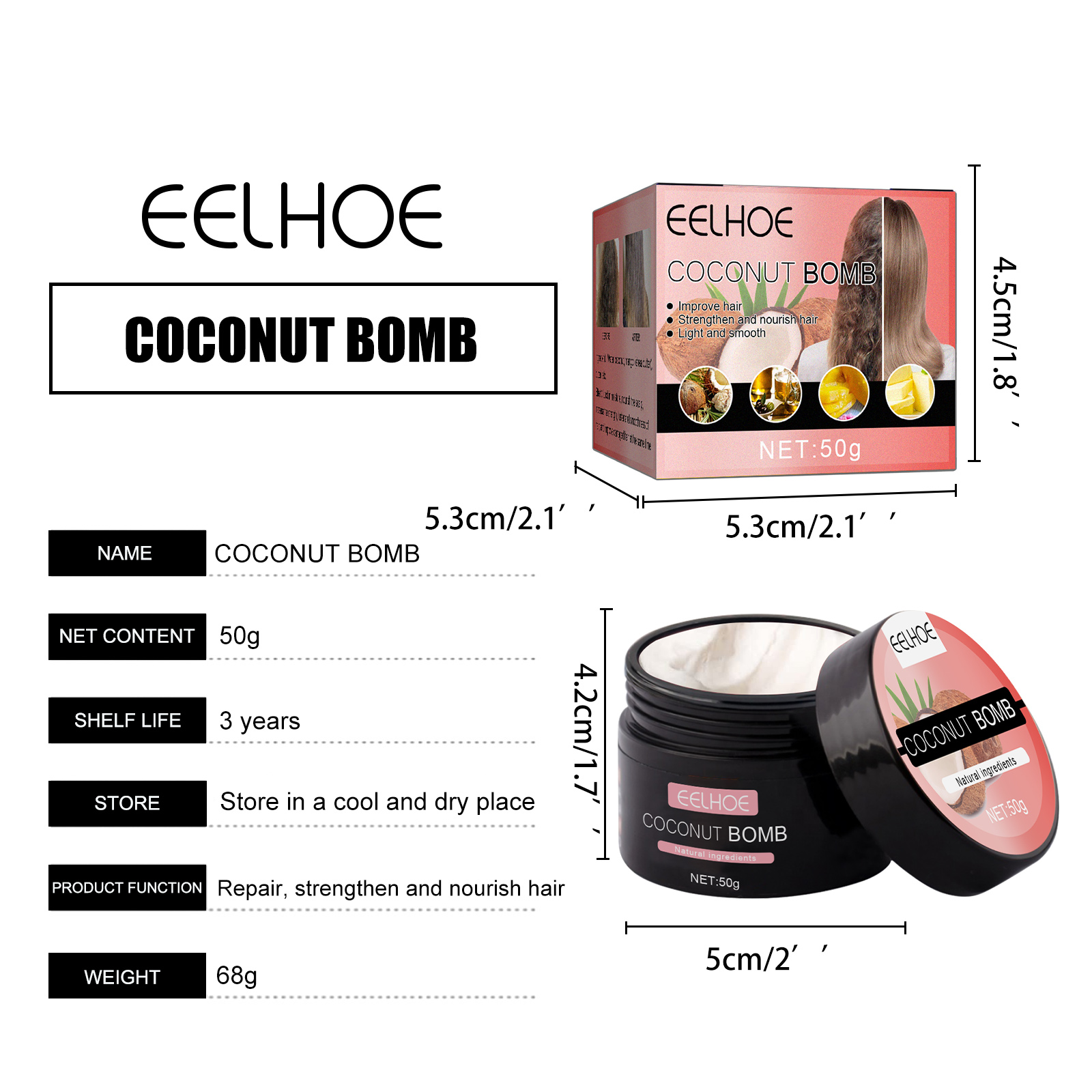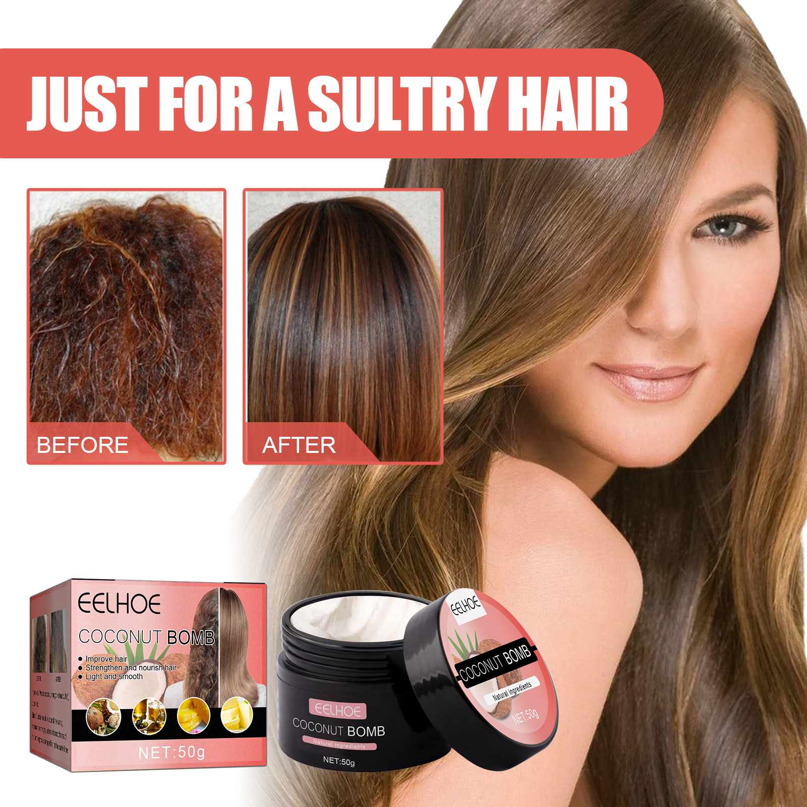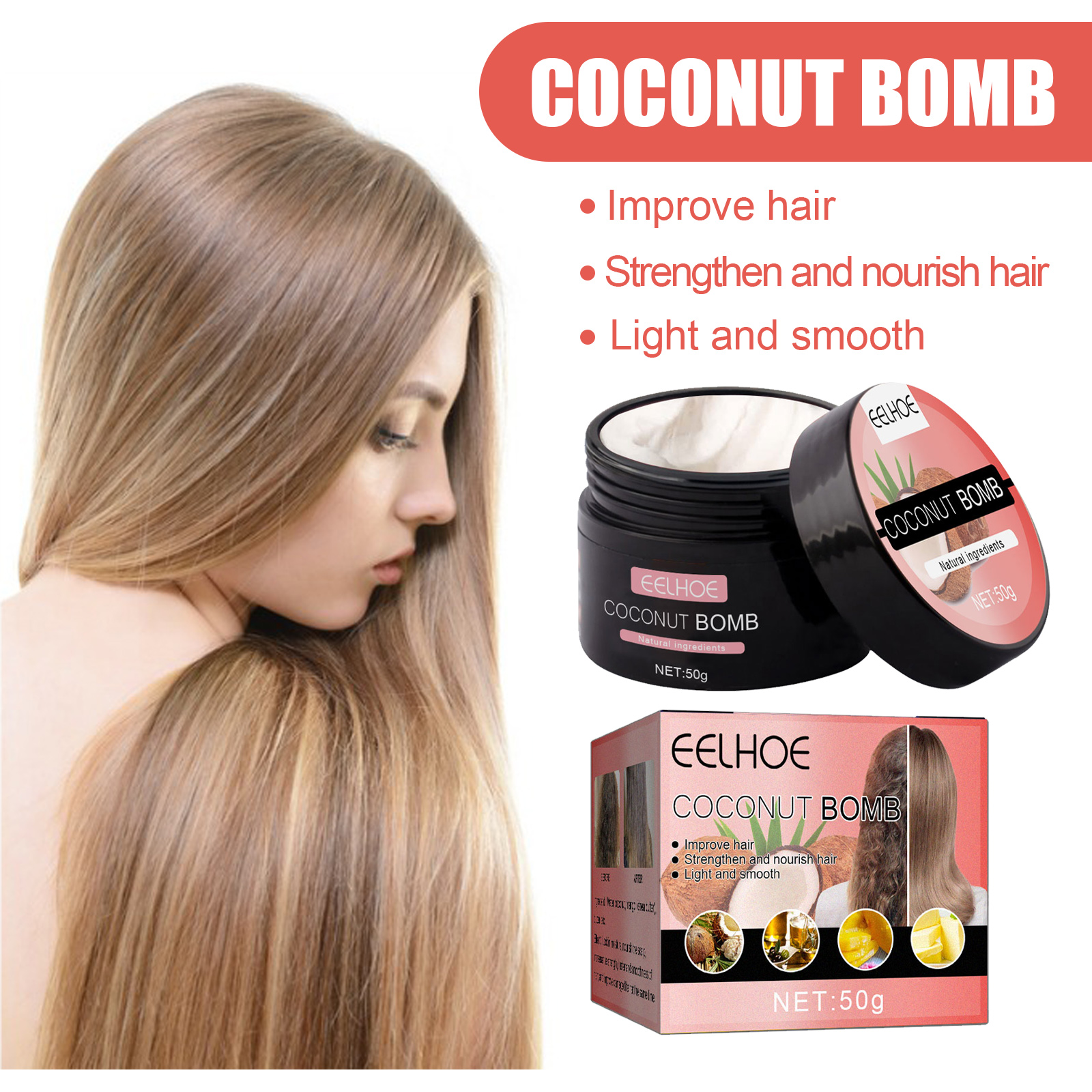 EELHOE Coconut Hair Mask Gently Cares For Dry Hair, Making It Smooth, Lustrous And Moisturizing. Hair Care Mask