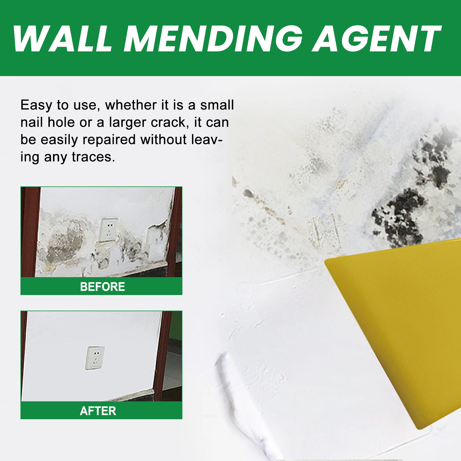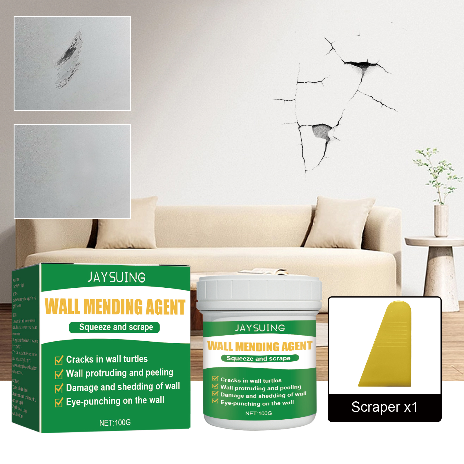 Jaysuing Wall Repair Plaster, Home Renovation Wall Graffiti Cover Mildew Maintenance Cracks Repair Plaster
